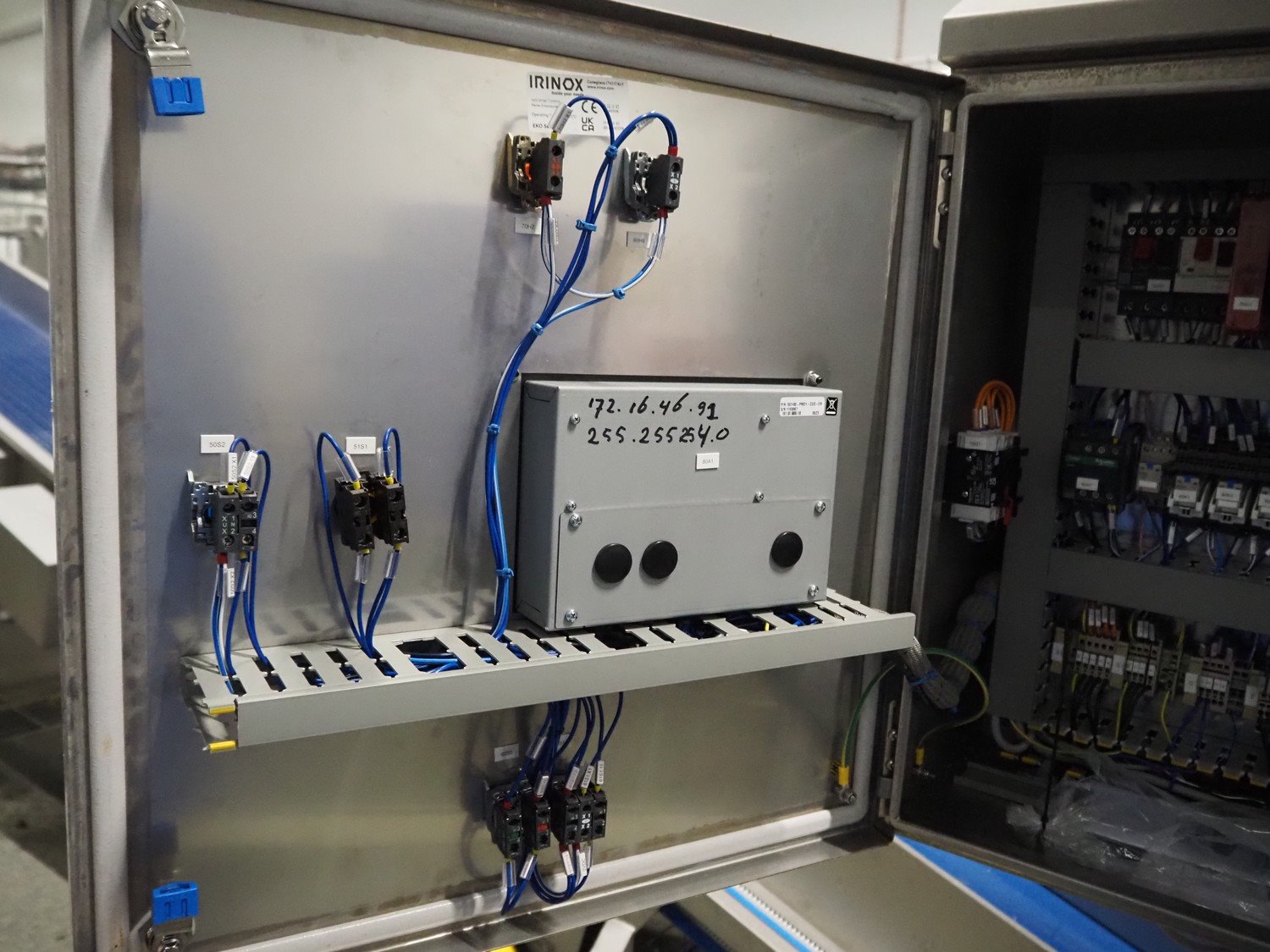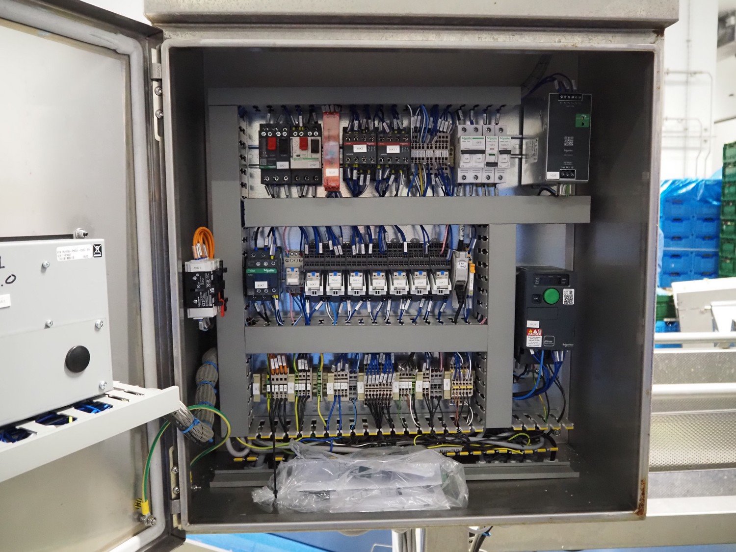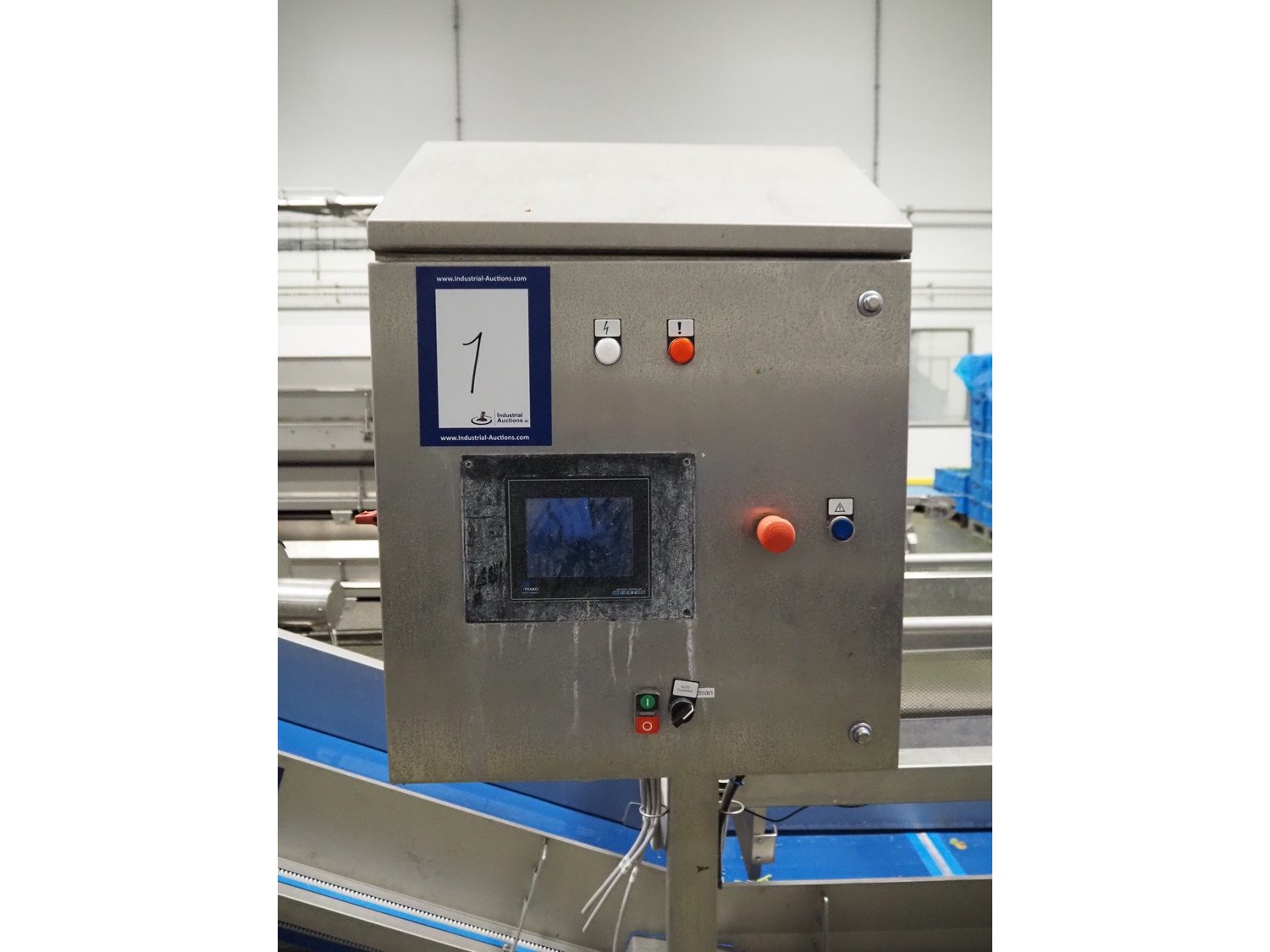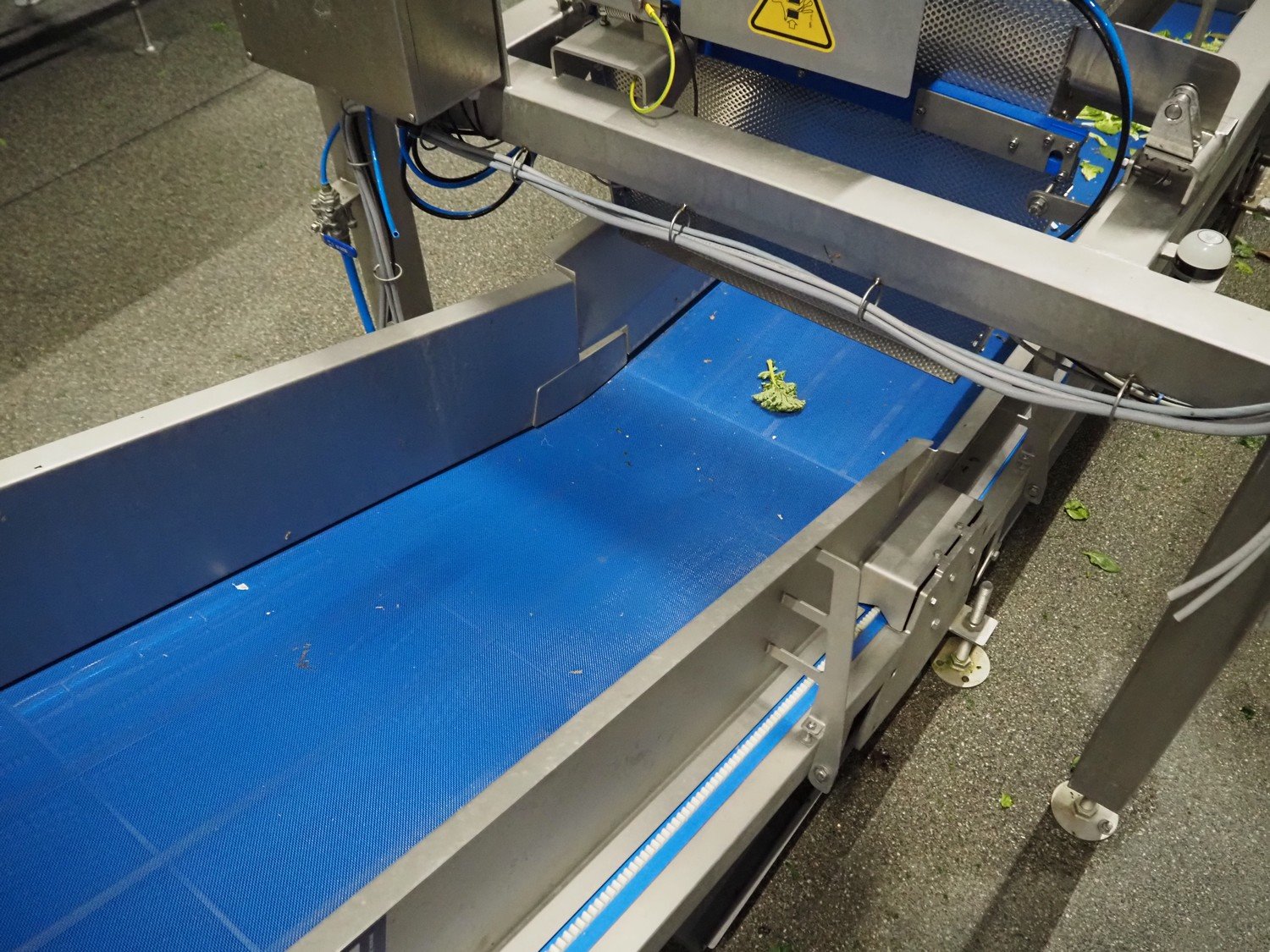 JBT FTNON B.V. weighing hopper with outfeed belt, dimensions hopper: 2500 mm x 1800 mm x 2000 mm, plastic mesh belt, belt width: 600 mm, elevating height: 800 mm, total dimensions outfeed belt: 4000 mm x 1300 mm x 950 mm. Incomplete, technical condition unknown. Kavel locatie: Maarten de Vriesstraat 3, 5975 RW Sevenum, Nederland