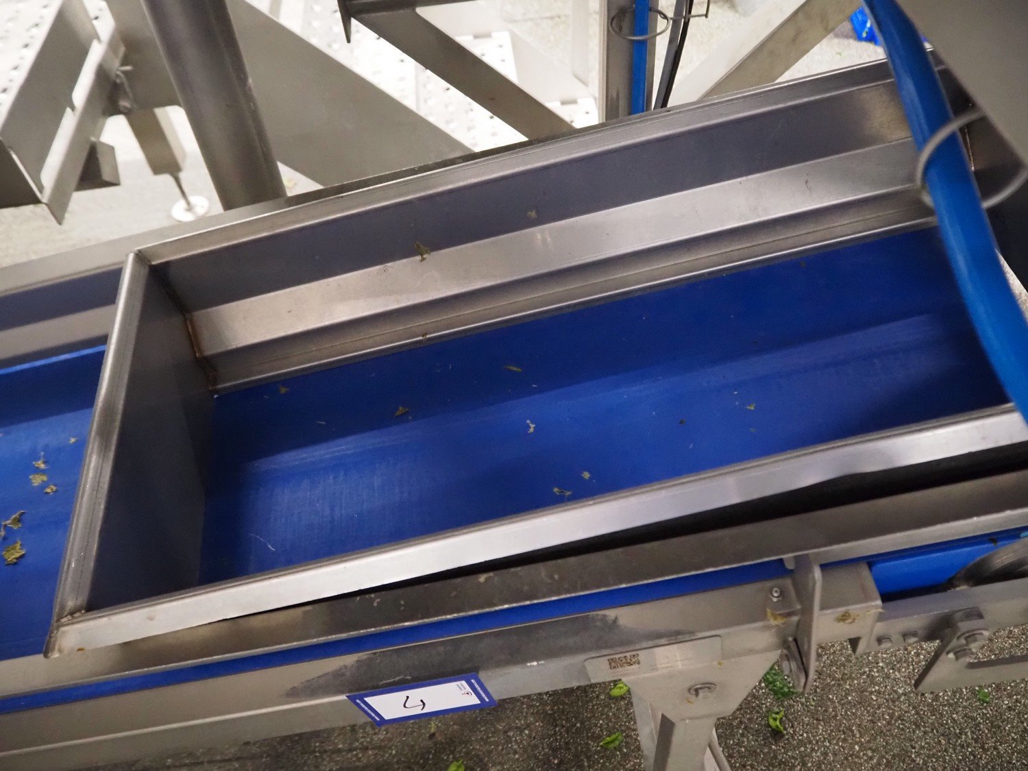 JBT FTNON B.V. waste conveyor, machine number: 18A1682000, year of construction: 2018, plastic belt, belt width: 400 mm, total dimensions: 2700 mm x 500 mm x 1100 mm. Kavel locatie: Maarten de Vriesstraat 3, 5975 RW Sevenum, Nederland