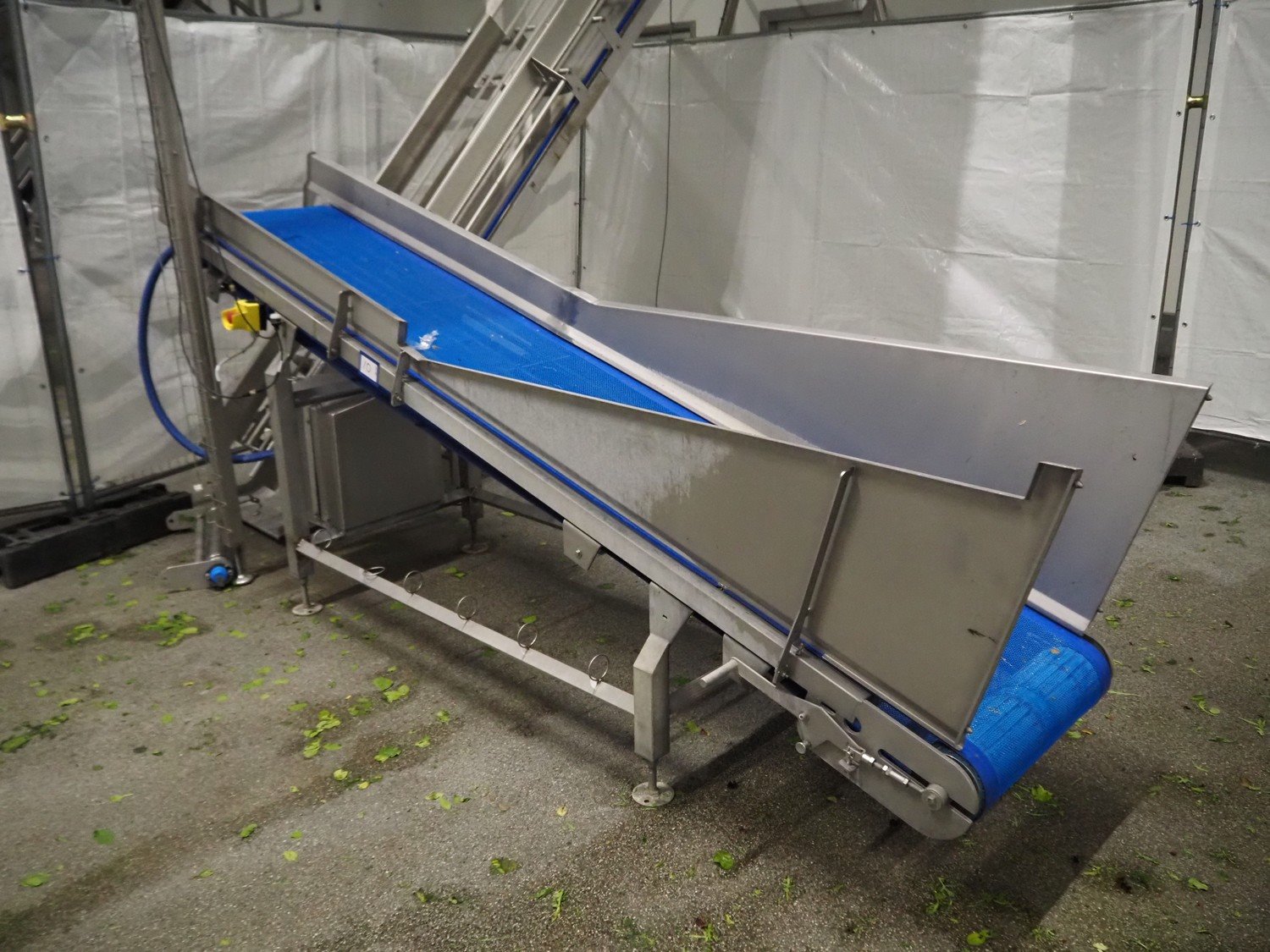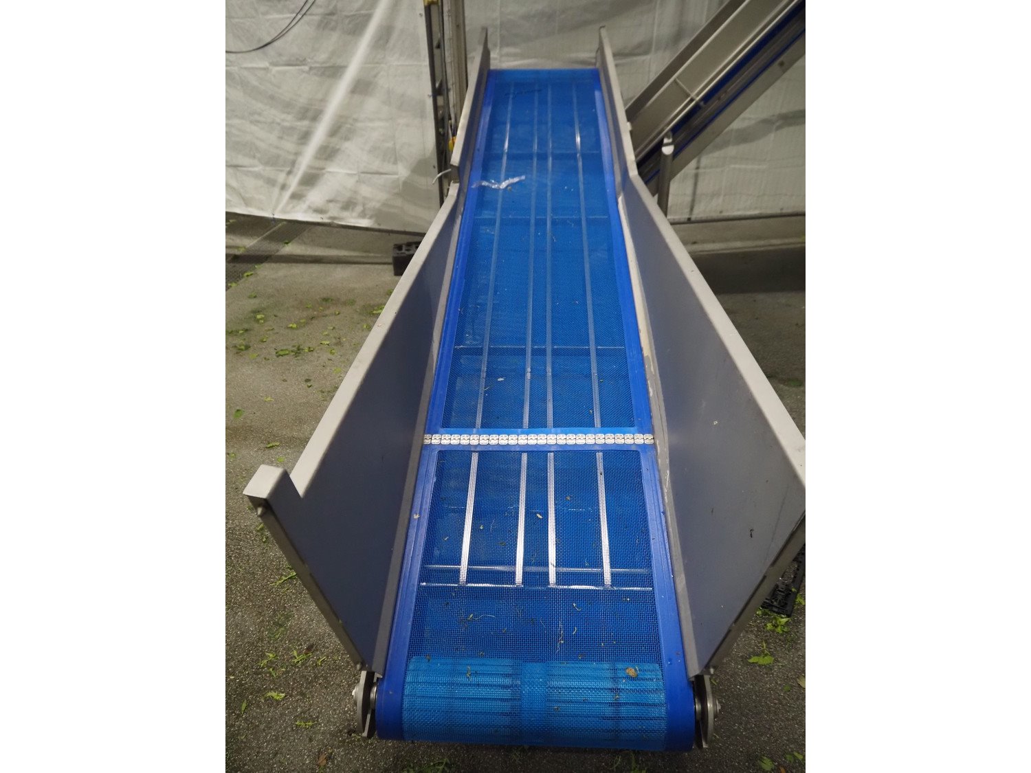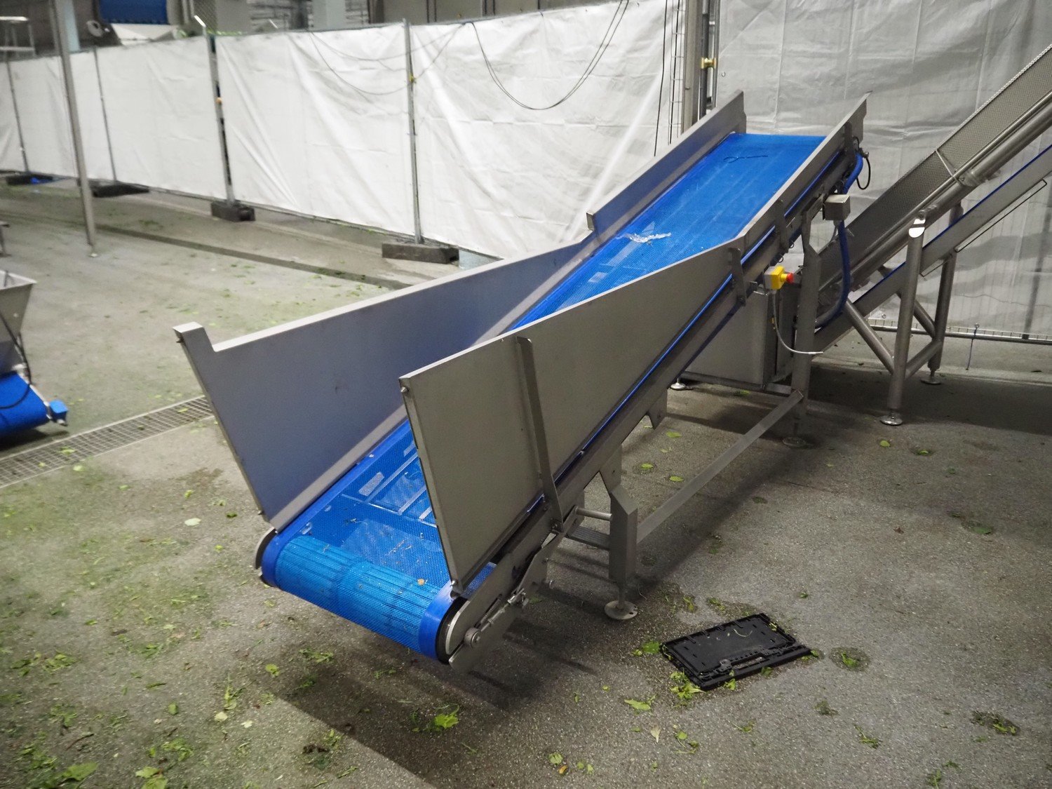 JBT FTNON B.V. elevating belt, machine number: 18A1678000, year of construction: 2018, plastic mesh belt, belt width: 5602 mm, elevating height: 1300 mm, total dimensions: 3300 mm x 750 mm x 1450 mm. Kavel locatie: Maarten de Vriesstraat 3, 5975 RW Sevenum, Nederland