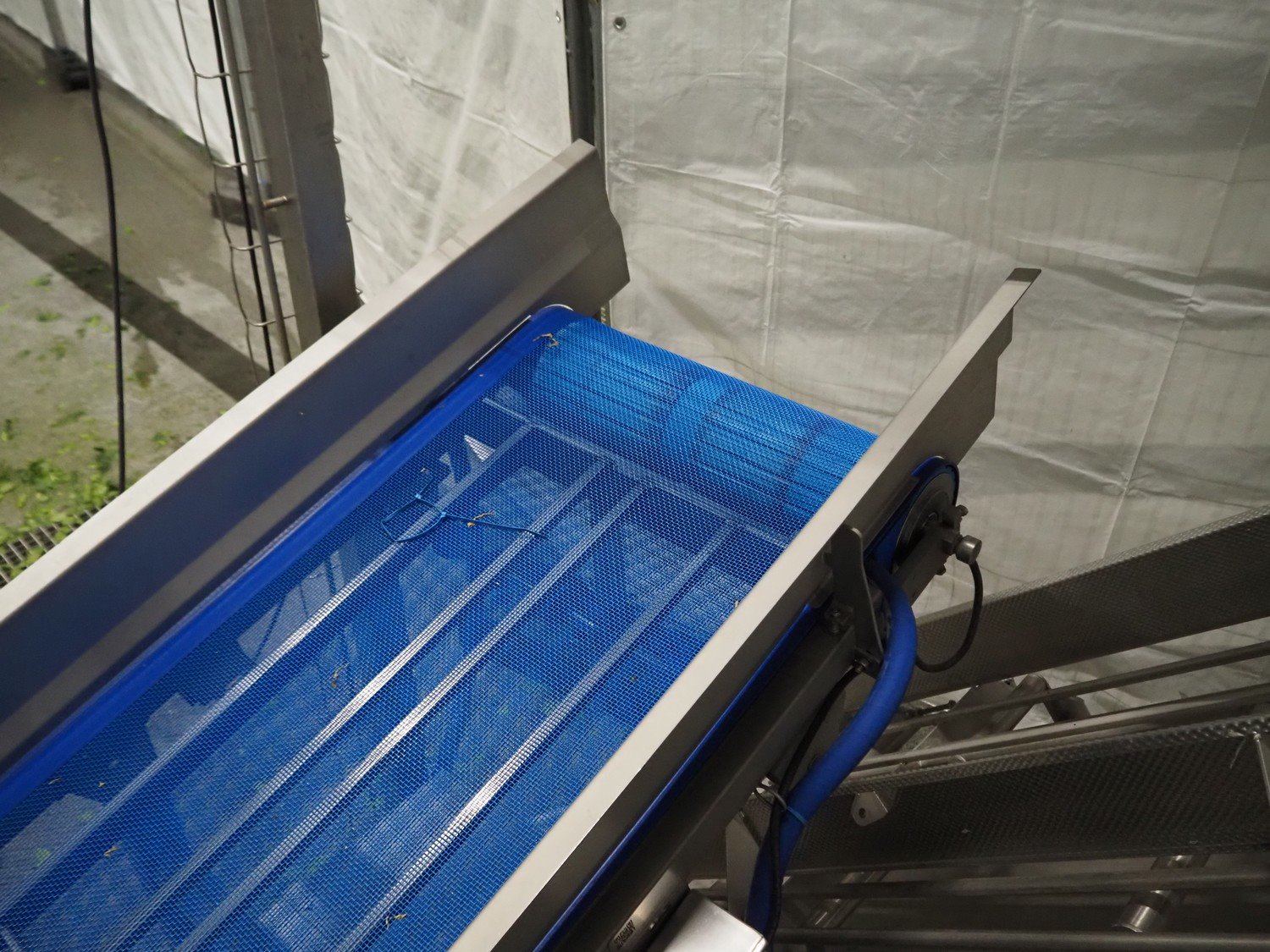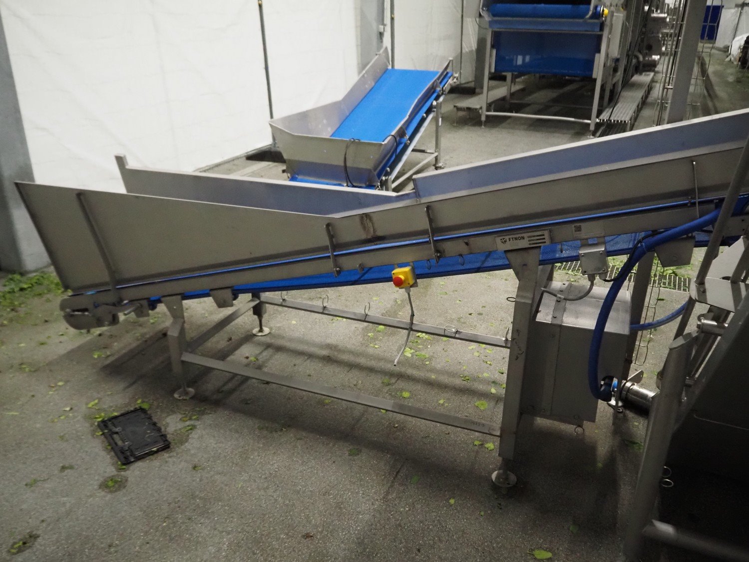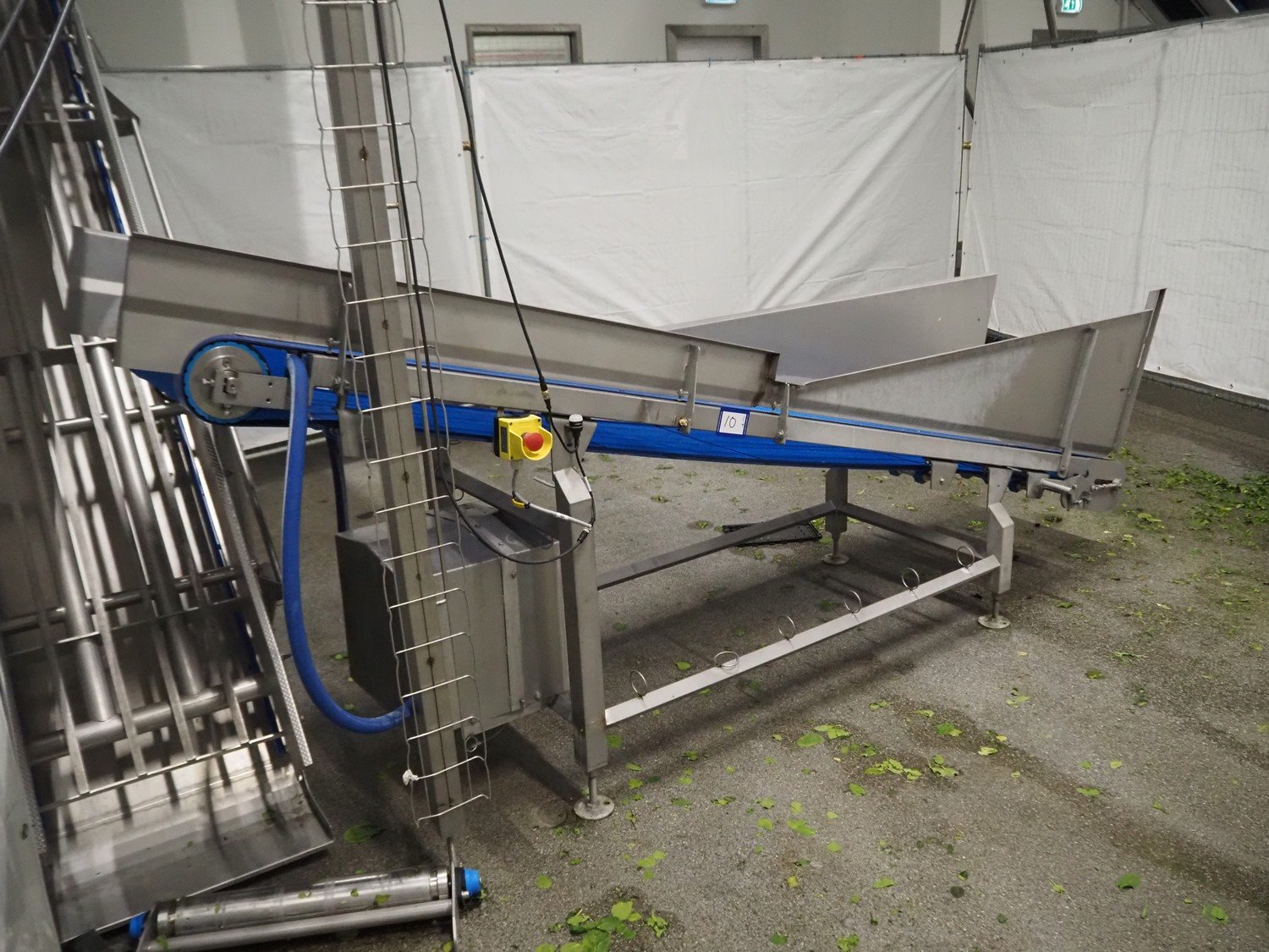 JBT FTNON B.V. elevating belt, machine number: 18A1678000, year of construction: 2018, plastic mesh belt, belt width: 5602 mm, elevating height: 1300 mm, total dimensions: 3300 mm x 750 mm x 1450 mm. Kavel locatie: Maarten de Vriesstraat 3, 5975 RW Sevenum, Nederland