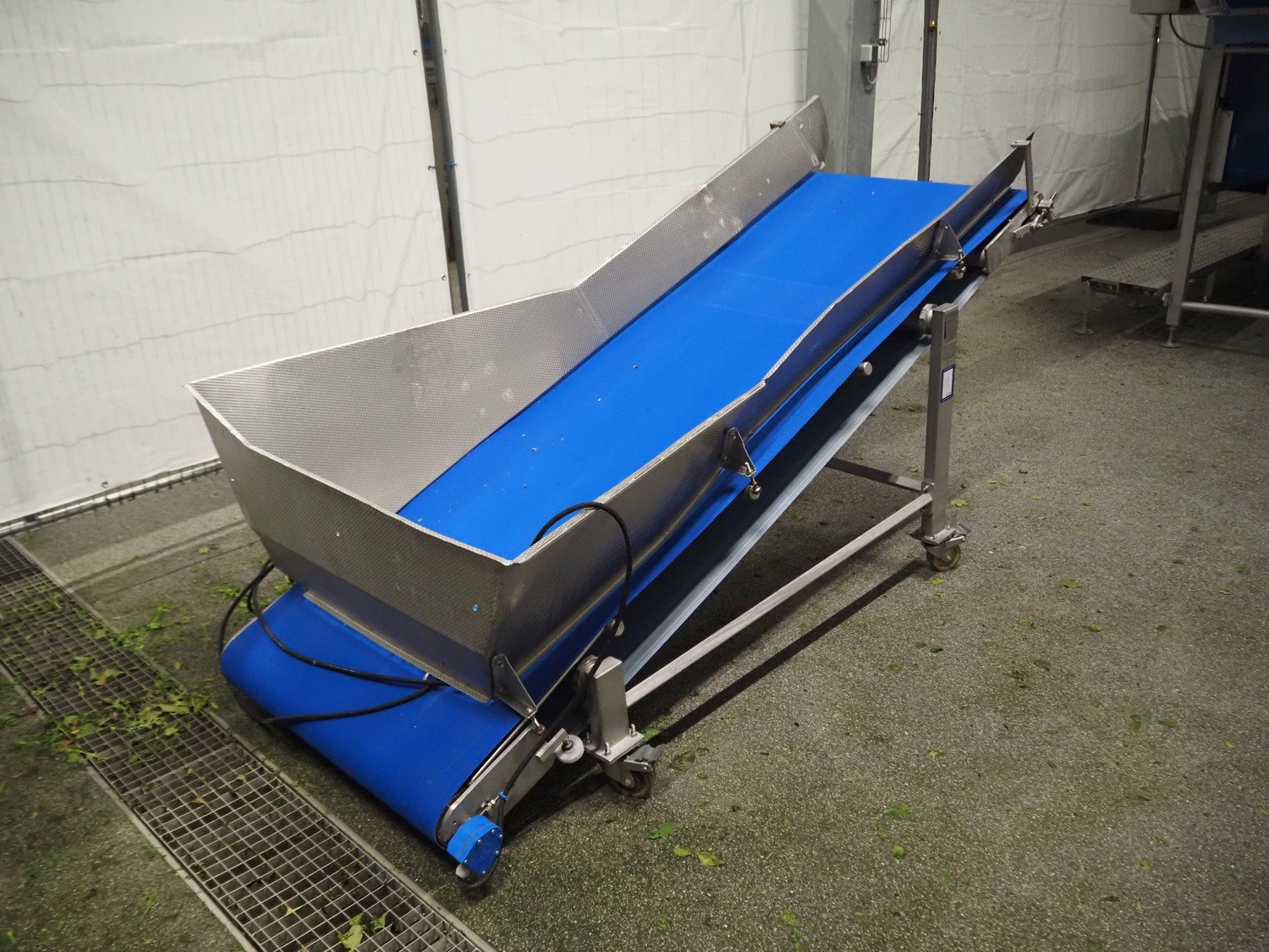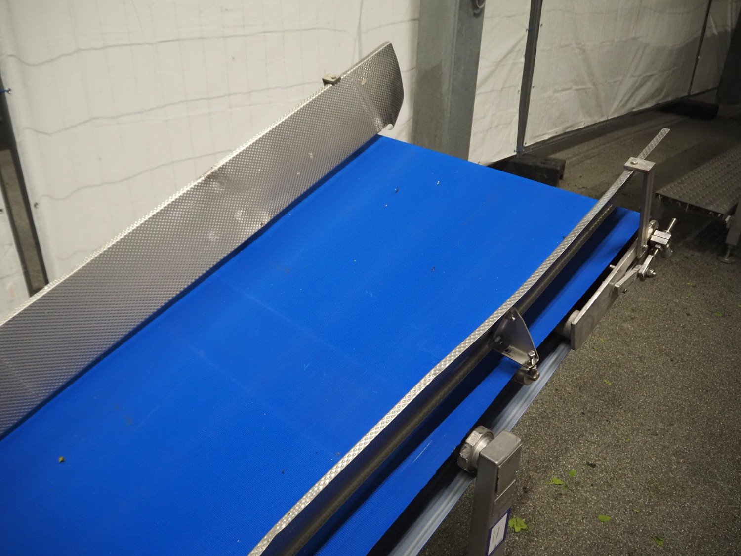 Eilert B.V. elevating belt, type: TR-2500, machine number: 551, year of construction: 2011, 400 V, 3 Ph, 50 Hz, 0.37 kW, plastic belt, belt width: 880 mm, elevating height: 1100 mm, total dimensions: 2500 mm x 1100 mm x 1300 mm. Kavel locatie: Maarten de Vriesstraat 3, 5975 RW Sevenum, Nederland