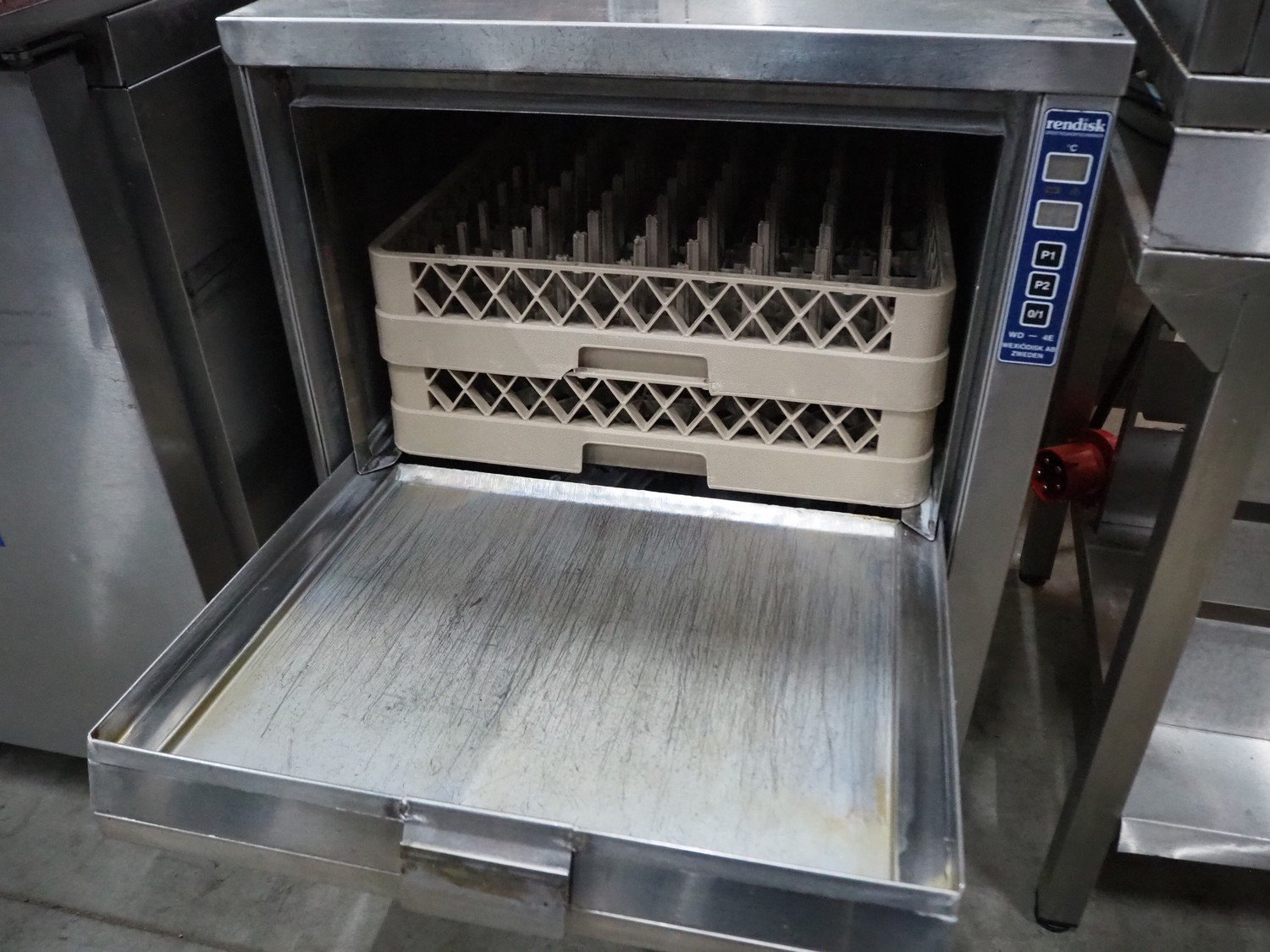 Wexiödisk AB dishwasher, type: WD-4E, number: 93543, 380 V, 3 Ph, 50 Hz, 7.5 kW, 16 A, dimensions: 600 mm x 590 mm x 880 mm. Kavel locatie: Sprokkelveld 5, 6596 DH Milsbeek, Nederland