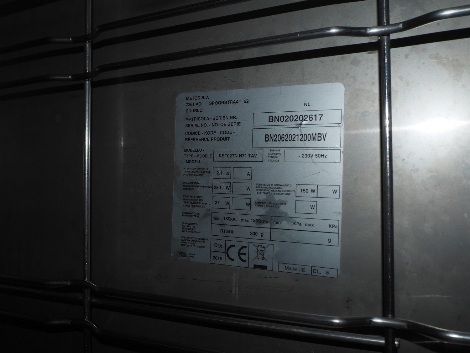 Metos refrigeration counter, model: KST02TN H71 TAV, serial number: BN020202617, year of construction: 2016, 230 V, 50 Hz, 280 W, 2.1 A, dimensions: 1250 mm x 700 mm x 860 mm. Kavel locatie: Sprokkelveld 5, 6596 DH Milsbeek, Nederland