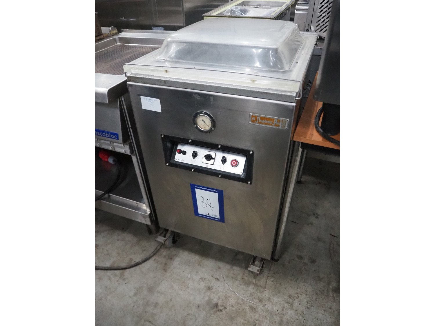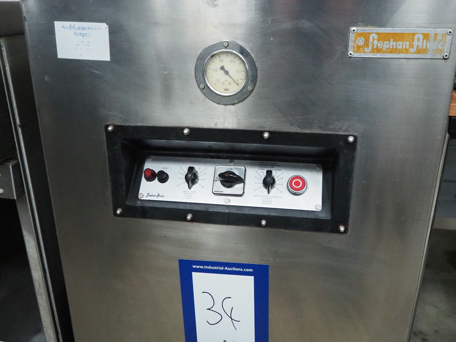 Stephan Alvac mobile vacuum machine, type: ALVAC II SN, machine number: 8107e20611, 220-380 V, 3 Ph, 6.3-3.7 A, 1.5 kW, seal length: (2x) 500 mm, dimensions chamber: 610 mm x 510 mm, Rietschle vacuum pump, total dimensions: 750 mm x 600 mm x 1120 mm. Kavel locatie: Sprokkelveld 5, 6596 DH Milsbeek, Nederland