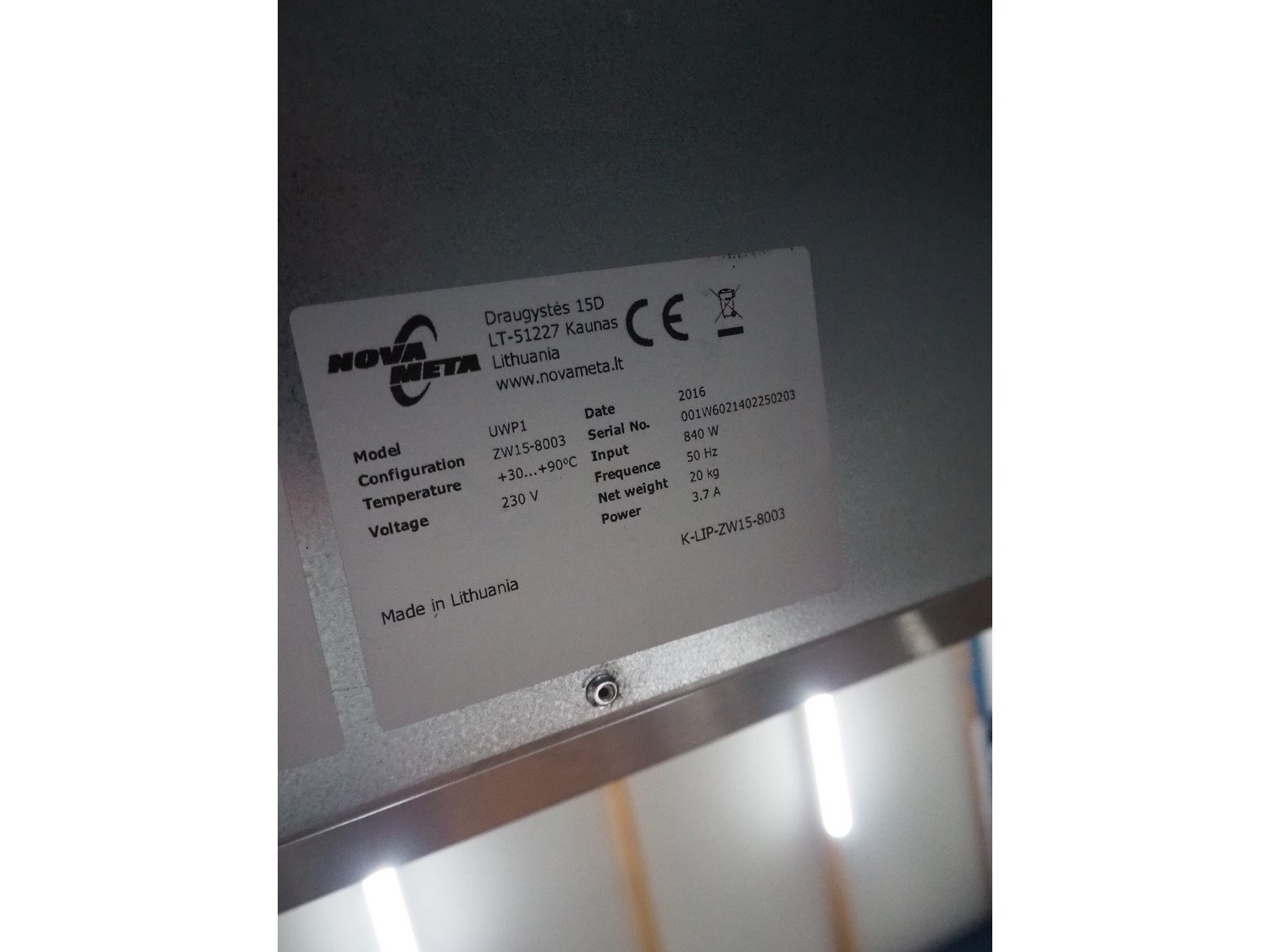 Novameta drop-in heated plate, model: UWP1, serial number: 001W6021402250203, year of construction: 2016, 230 V, 50 Hz, 3.7 A, 840 W, temperature range: 30-90°C, dimensions: 535 mm x 1310 mm x 215 mm. Kavel locatie: Sprokkelveld 5, 6596 DH Milsbeek, Nederland
