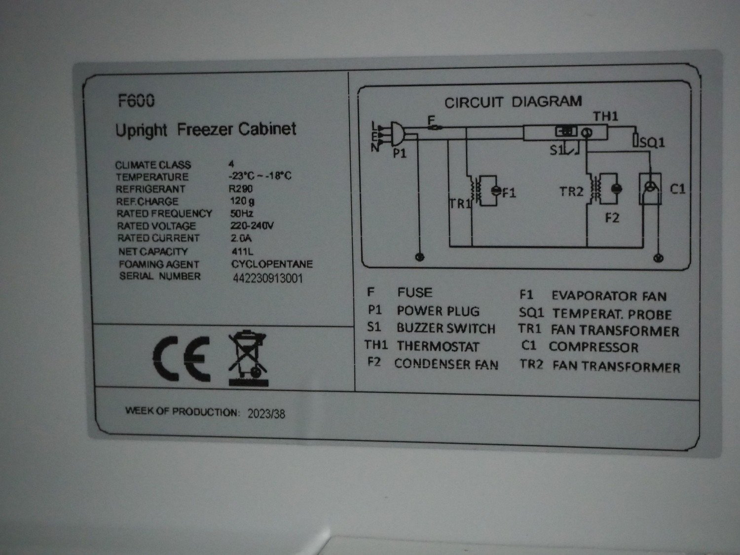 Freezer, model: F600, serial number: 442230913001, year of construction: 2023, 220-240 V, 50 Hz, 2.0 A, net capacity: 411 litres, 7 floors, dimensions floors: (7x) 470 mm x 620 mm, total dimensions: 695 mm x 770 mm x 1895 mm. Kavel locatie: Sprokkelveld 5, 6596 DH Milsbeek, Nederland