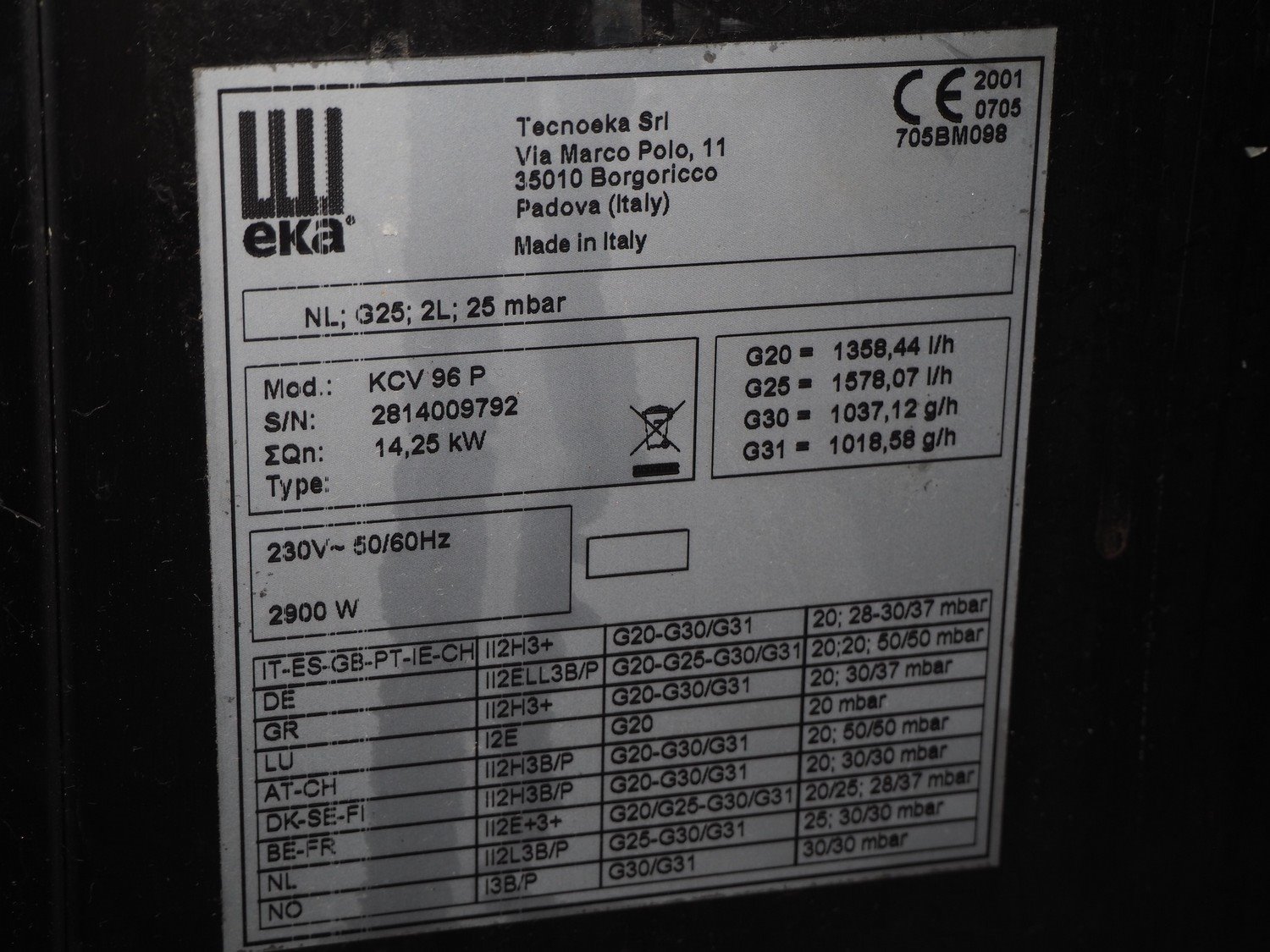 Tenoeka Srl oven with stove, model: KCV 96 P, serial number: 2814009792, 230 V, 50-60 Hz, 2900 W, gas heated, 5-pits, 4 floors, dimensions floors: (4x) 330 mm x 540 mm, total dimensions: 630 mm x 900 mm x 950 mm. Kavel locatie: Sprokkelveld 5, 6596 DH Milsbeek, Nederland