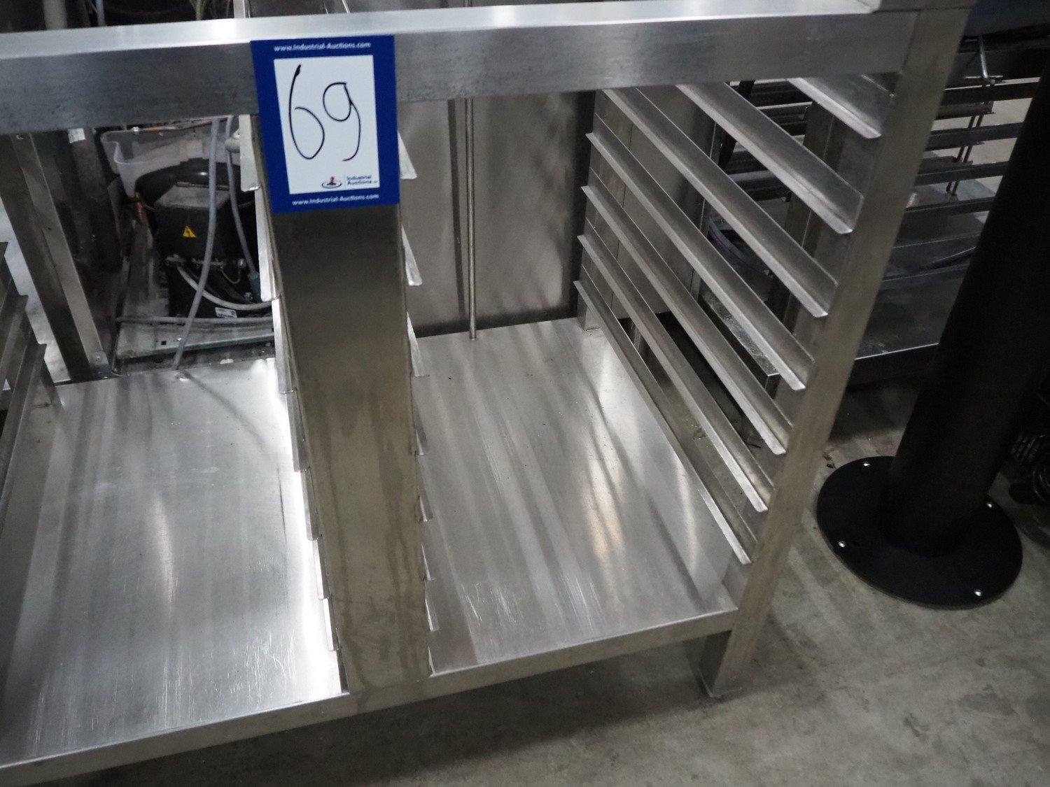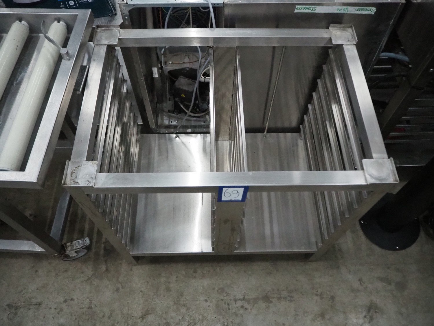 S/s frame for oven, (2x) 7 floors, dimensions floors: (7x) 560 mm x 320 mm, total dimensions: 560 mm x 820 mm x 810 mm. Kavel locatie: Sprokkelveld 5, 6596 DH Milsbeek, Nederland