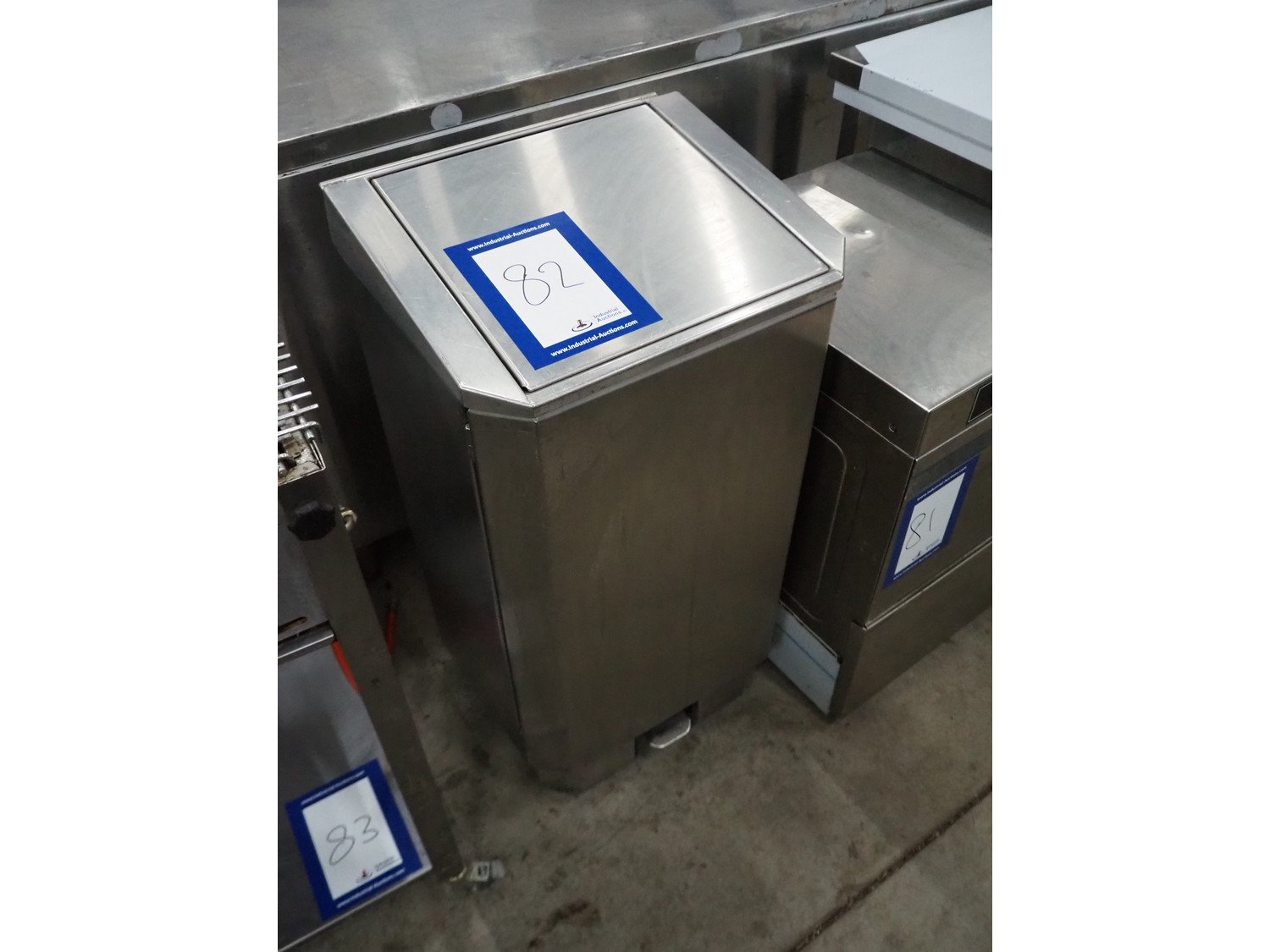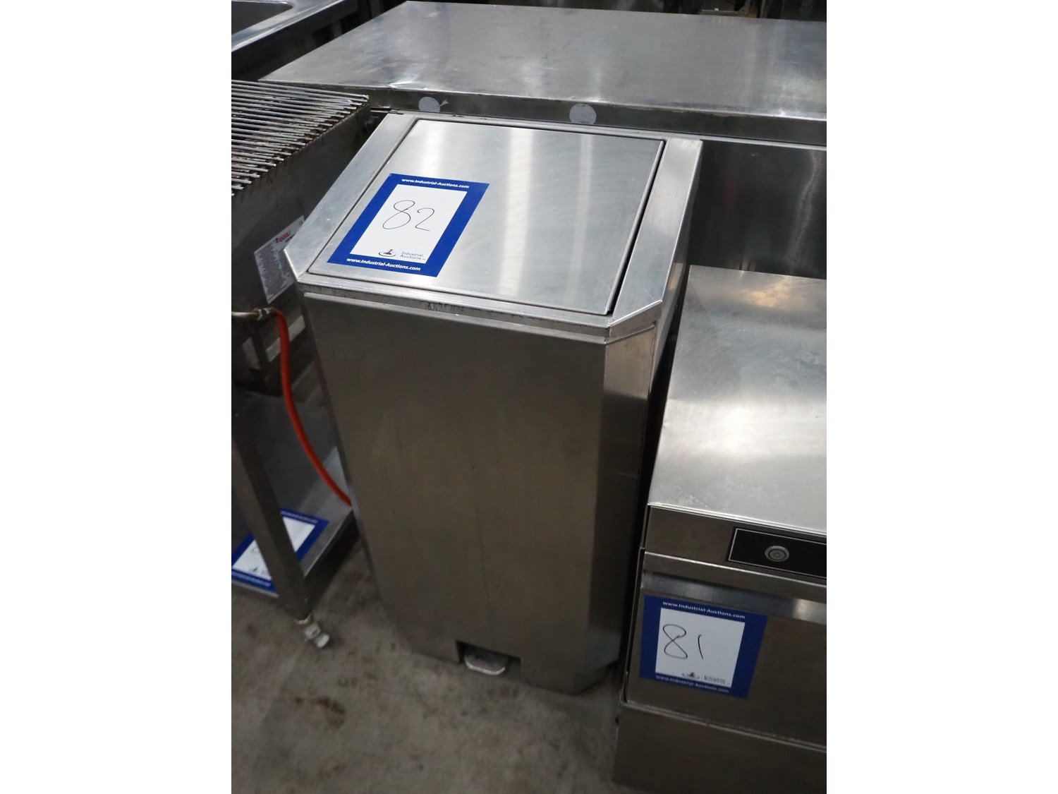 S/s waste bin, foot control, dimensions: 430 mm x 475 mm x 950 mm. Kavel locatie: Sprokkelveld 5, 6596 DH Milsbeek, Nederland