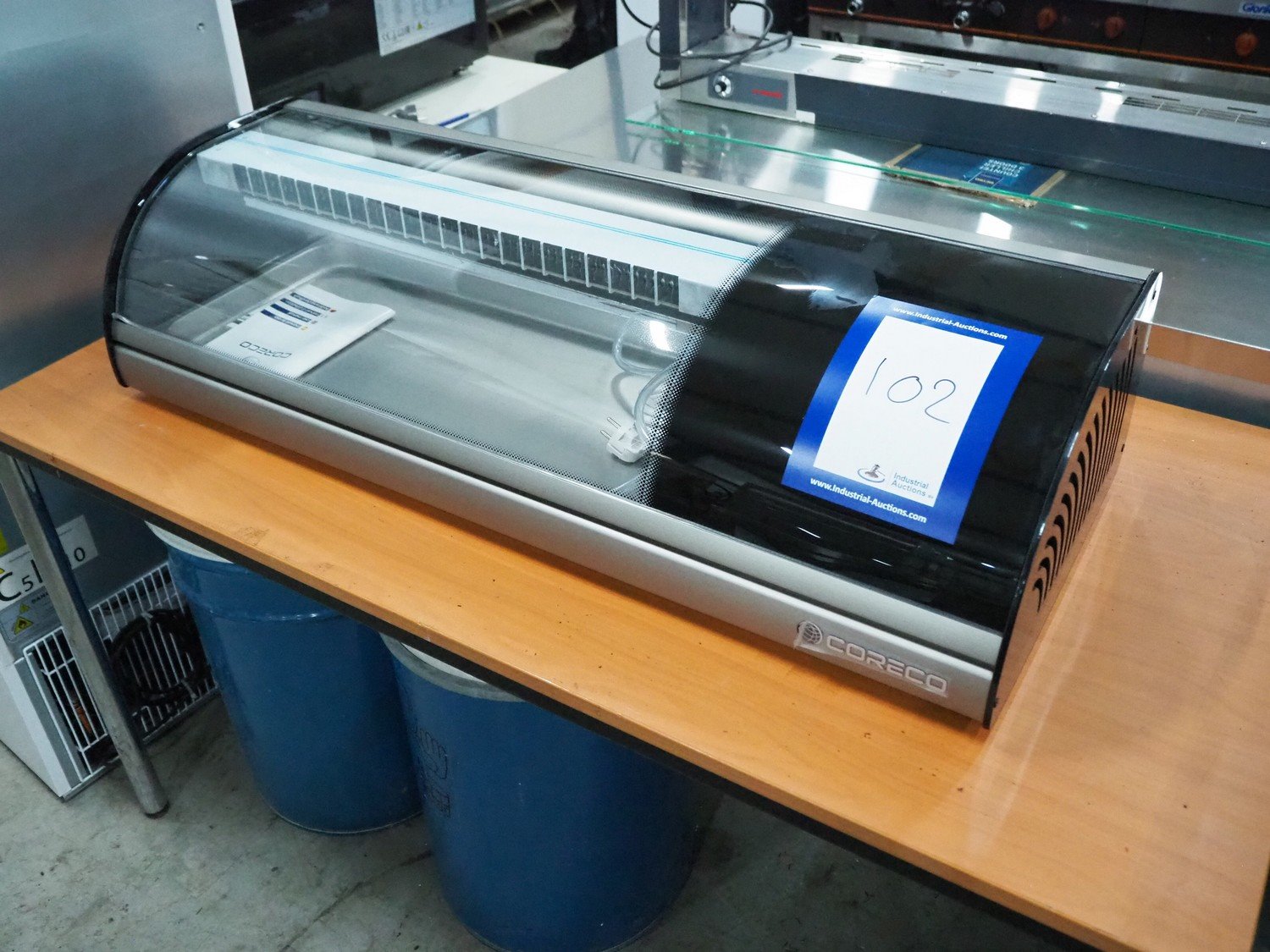Coreco showcase refrigerator, dimensions: 410 mm x 1040 mm x 250 mm. Kavel locatie: Sprokkelveld 5, 6596 DH Milsbeek, Nederland