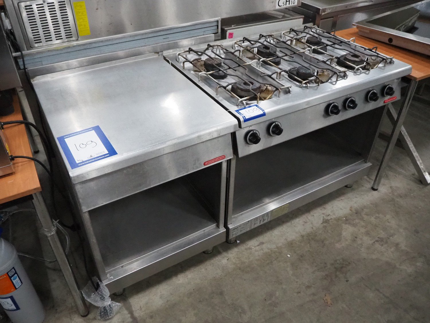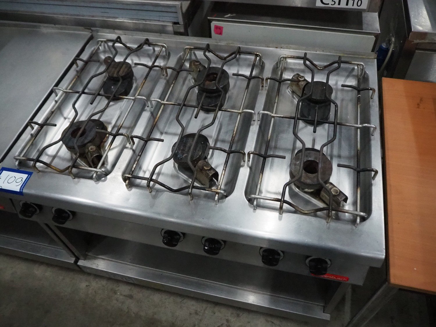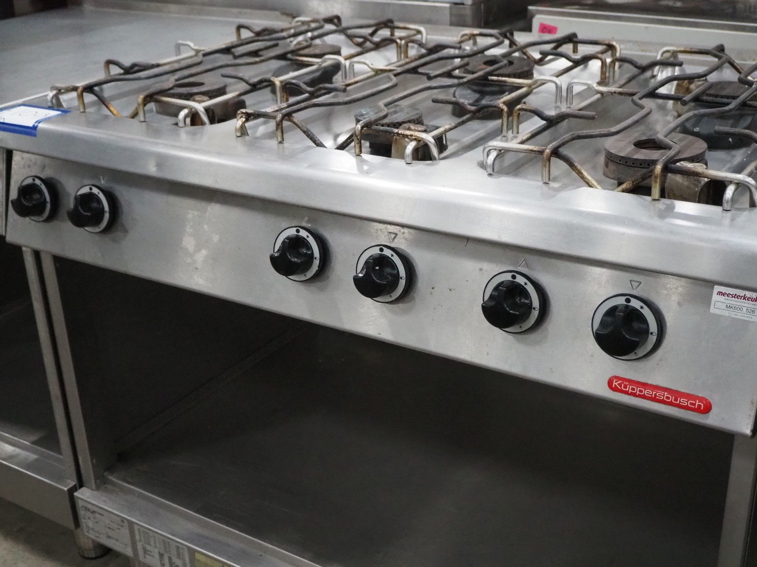 Küppersbusch stove with cabinet, model: EGH 610, year of construction: 2003, 6-pits, gas heated, dimensions: 705 mm x 1000 mm x 860 mm. Kavel locatie: Sprokkelveld 5, 6596 DH Milsbeek, Nederland