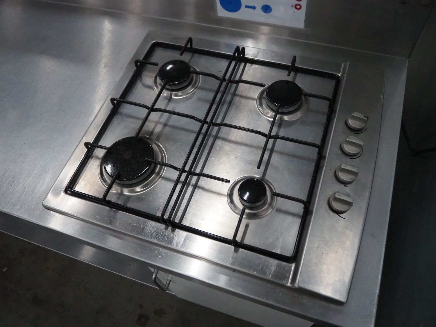 Kitchen counter with stove, 4-pits, dimensions: 630 mm x 1700 mm x 1100 mm. Kavel locatie: Sprokkelveld 5, 6596 DH Milsbeek, Nederland