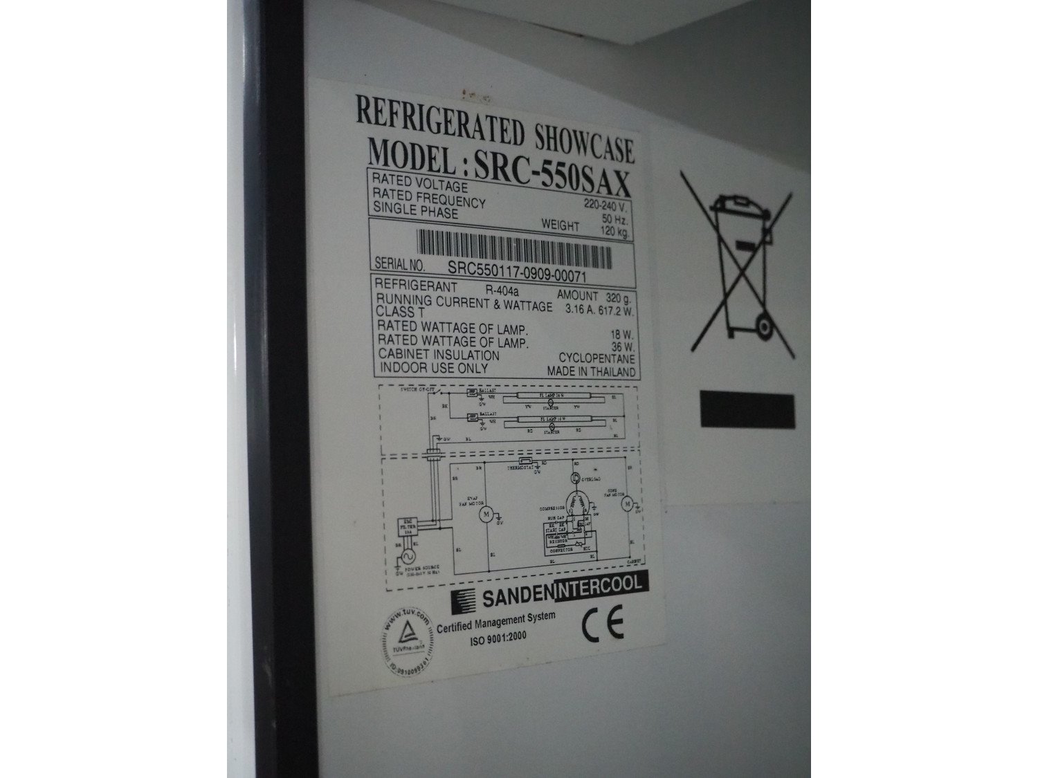 SandenIntercool refrigerator, model: SRC-550SAX, serial number: SRC550117-0909-00071, 220-240 V, 50 Hz, 4 racks, dimensions racks: (4x) 540 mm x 540 mm, total dimensions: 740 mm x 640 mm x 2100 mm. Kavel locatie: Sprokkelveld 5, 6596 DH Milsbeek, Nederland
