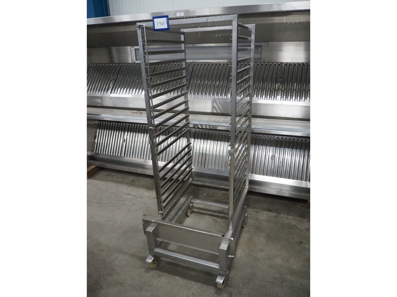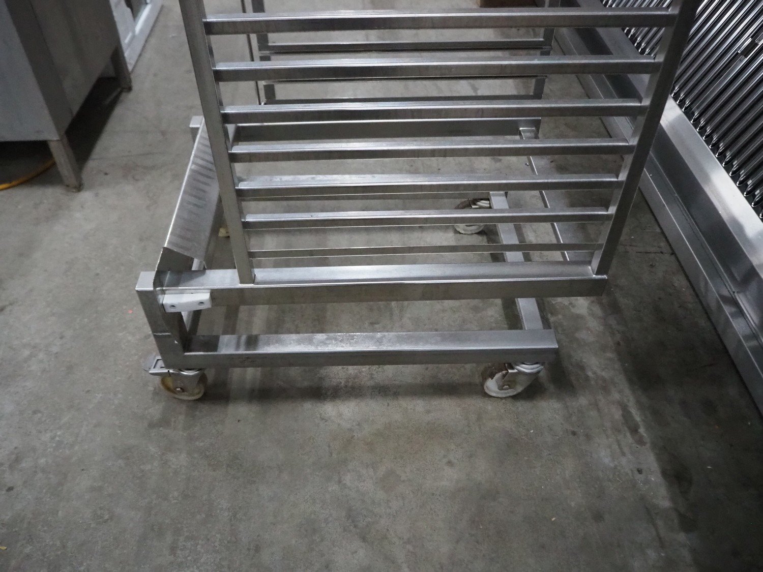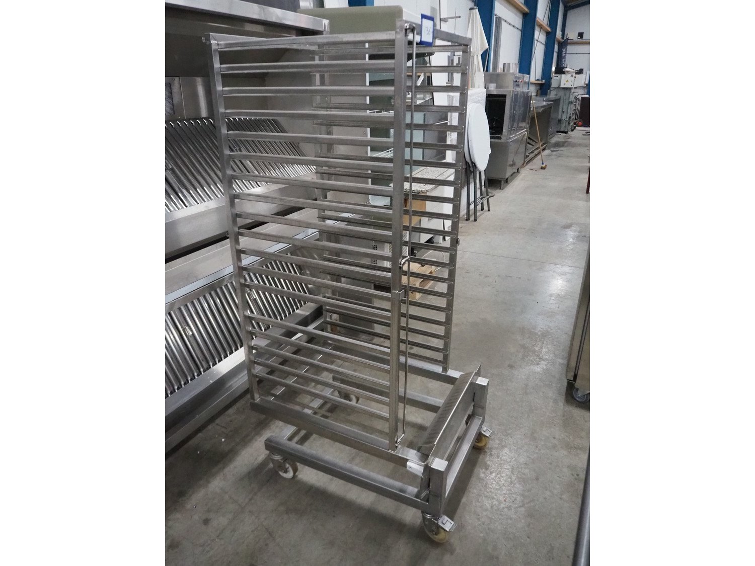 Mobile s/s oven rack, 20 floors, dimensions floors: (20x) 650 mm x 530 mm, total dimensions: 850 mm x 700 mm x 1715 mm. Kavel locatie: Sprokkelveld 5, 6596 DH Milsbeek, Nederland