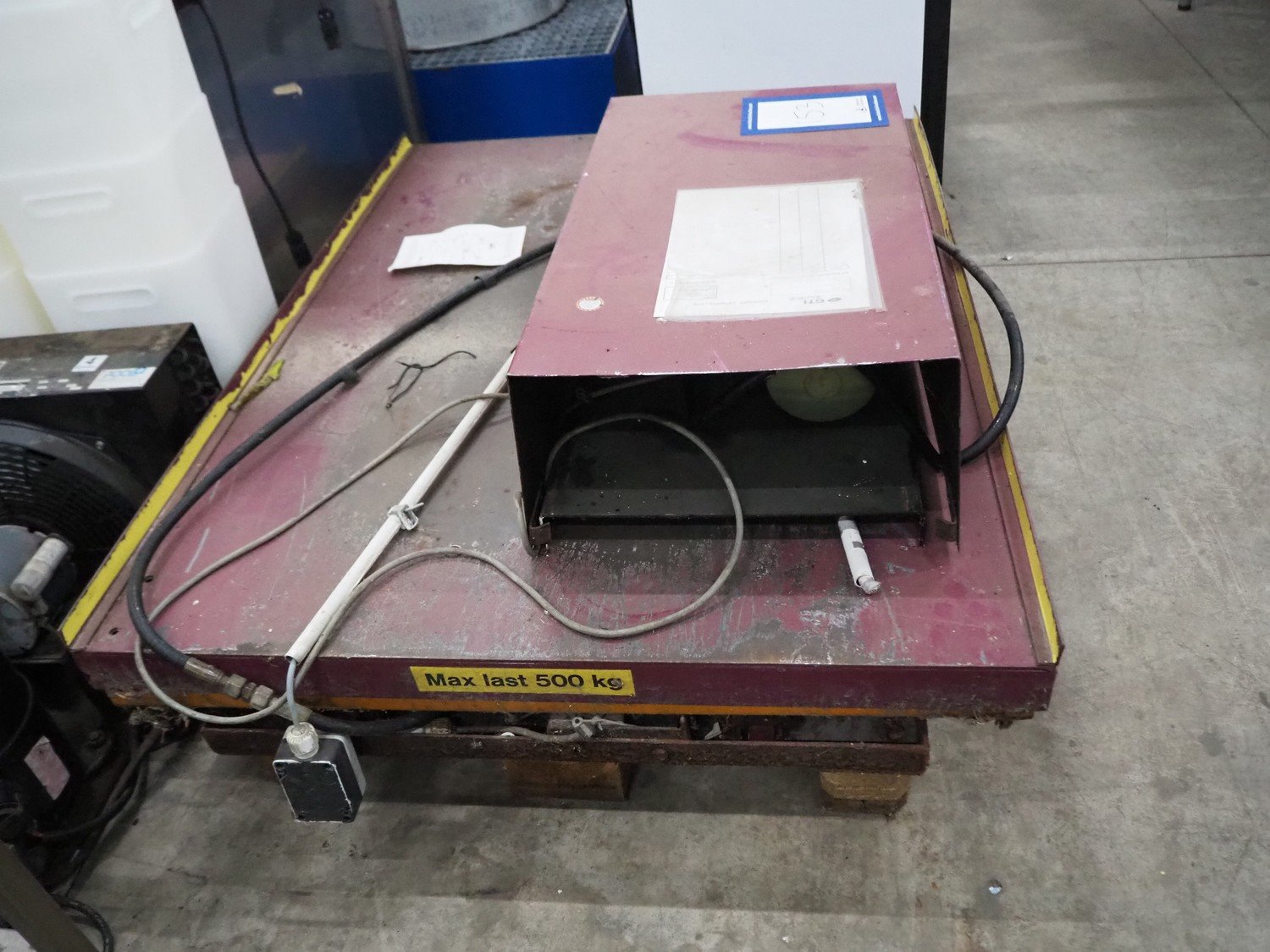 Lifting platform, capacity: 500 kg, dimensions: 1000 mm x 1340 mm x 170 mm. Kavel locatie: Sprokkelveld 5, 6596 DH Milsbeek, Nederland