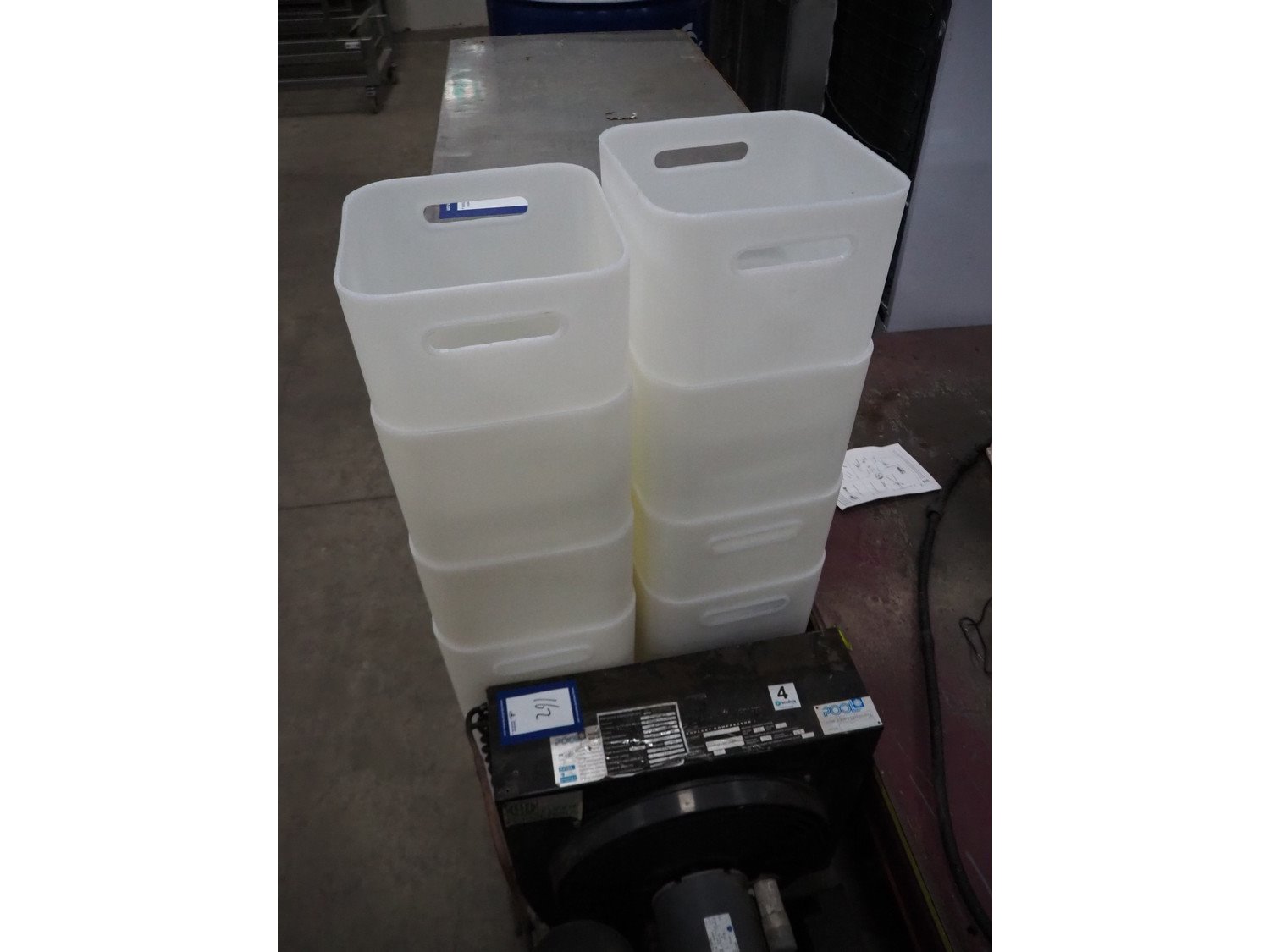 8 plastic bins, dimensions: (8x) 250 mm x 250 mm x 520 mm. Kavel locatie: Sprokkelveld 5, 6596 DH Milsbeek, Nederland
