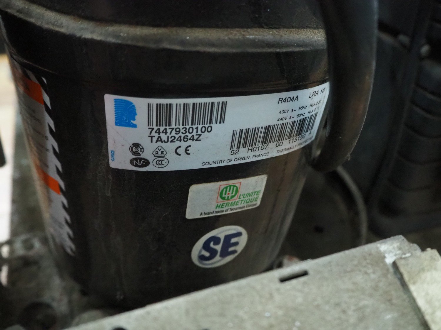 L'unite Hermetique cooling compressor, dimensions: 580 mm x 530 mm x 370 mm. Kavel locatie: Sprokkelveld 5, 6596 DH Milsbeek, Nederland