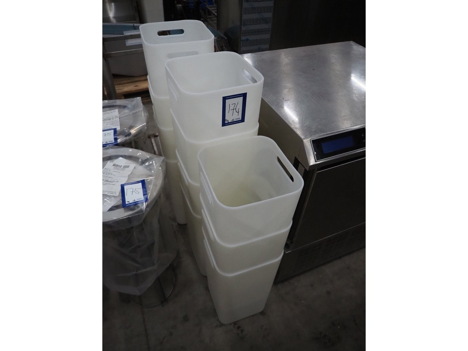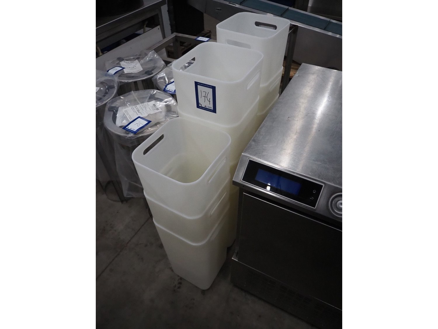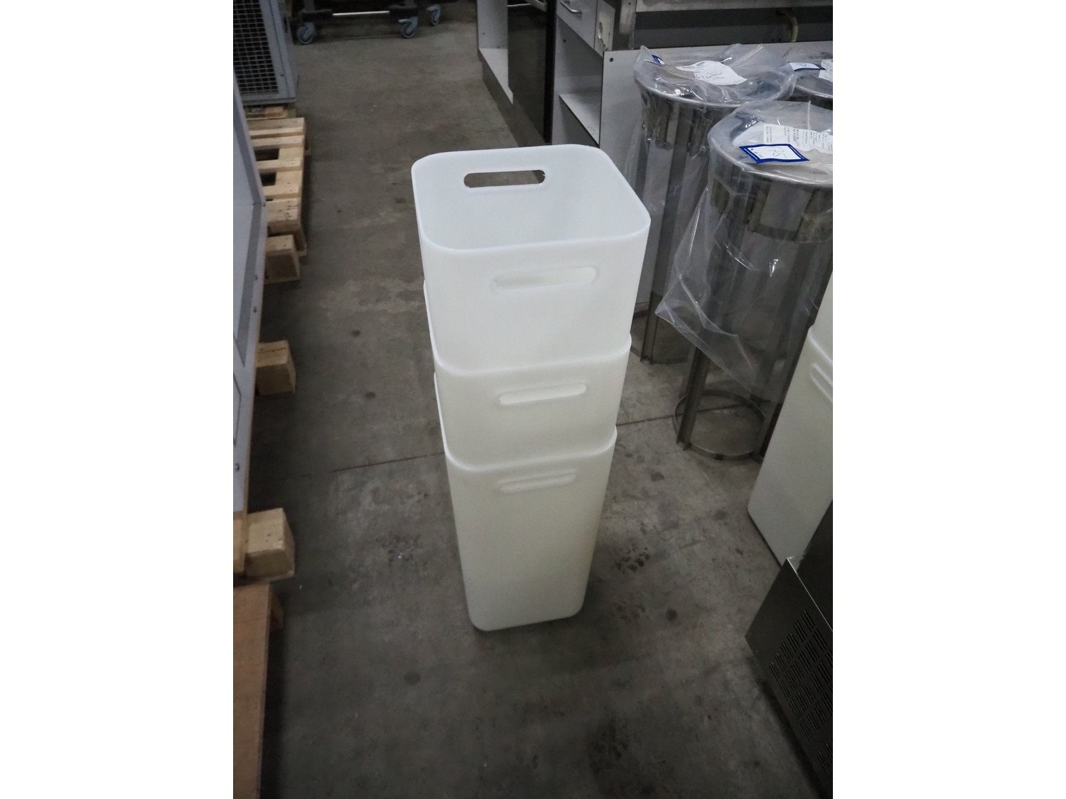 11 plastic bins, dimensions: (11x) 250 mm x 250 mm x 520 mm. Kavel locatie: Sprokkelveld 5, 6596 DH Milsbeek, Nederland