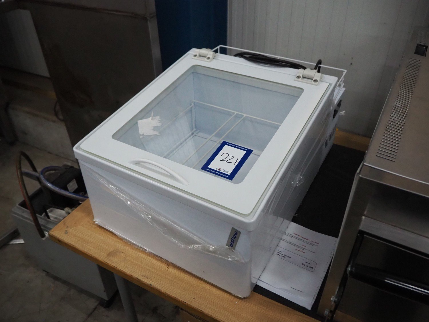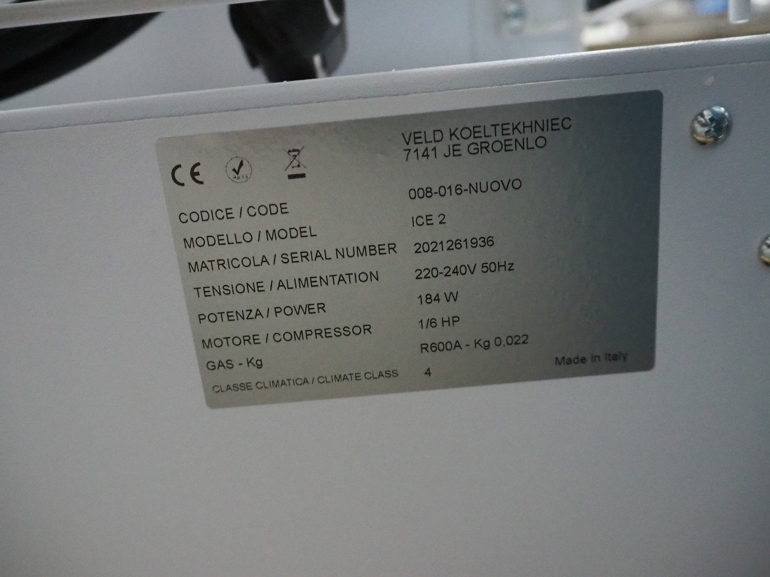 Veld Koeltekhniec table model freezer, model: ICE 2, serial number: 2021261936, 220-240 V, 50 Hz, 184 kW, refrigerant: R600A / 0.022 kg, inside dimensions: 400 mm x 370mm x 220 mm, total dimensions: 710 mm x 460 mm x 360 mm. Kavel locatie: Sprokkelveld 5, 6596 DH Milsbeek, Nederland