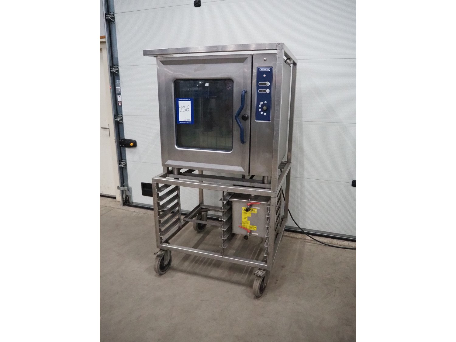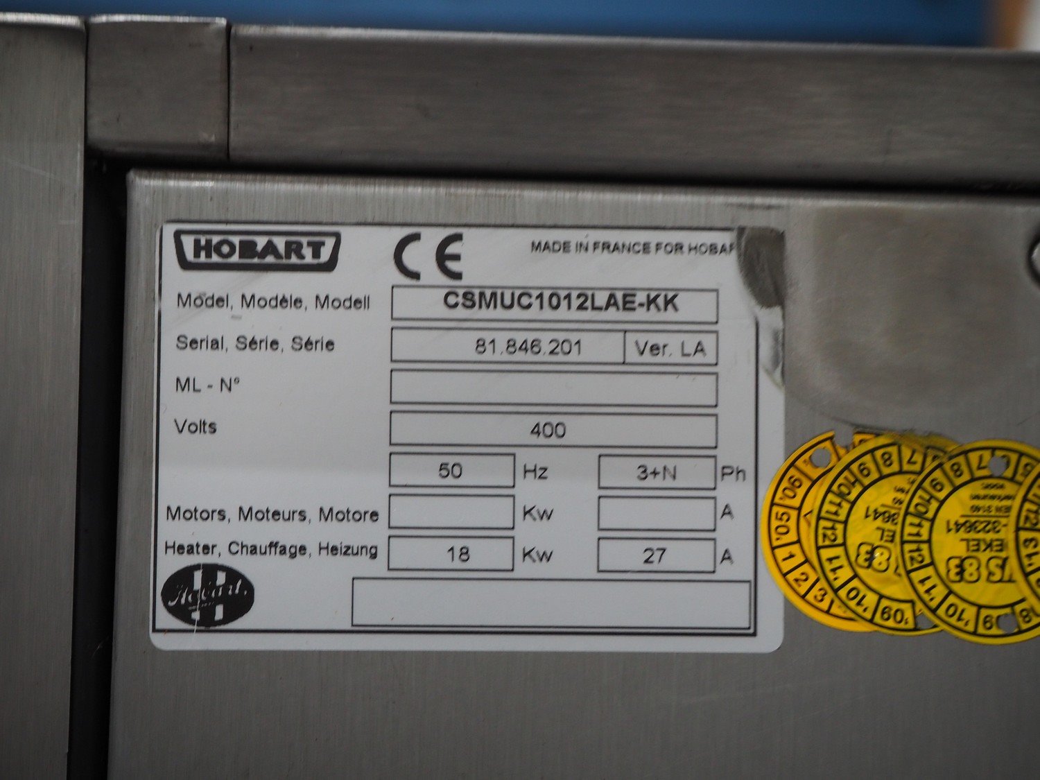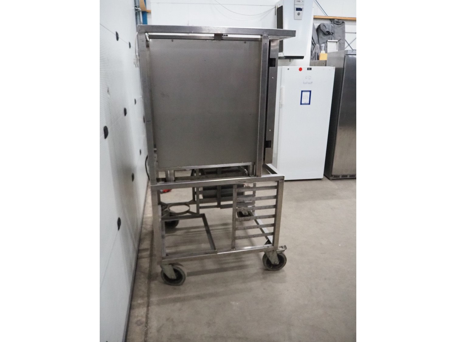 Hobart combi steamer on s/s trolley, model: CSMUC1012LAE-KK, serial number: 81.846.201, 400 V, 50 Hz, 3 Ph, 27 A, 18 kW, 10 floors, floor dimensions: 370 mm x 530 mm, total dimensions: 950 mm x 1000 mm x 1830 mm. Technical condition unknown. Kavel locatie: Sprokkelveld 5, 6596 DH Milsbeek, Nederland