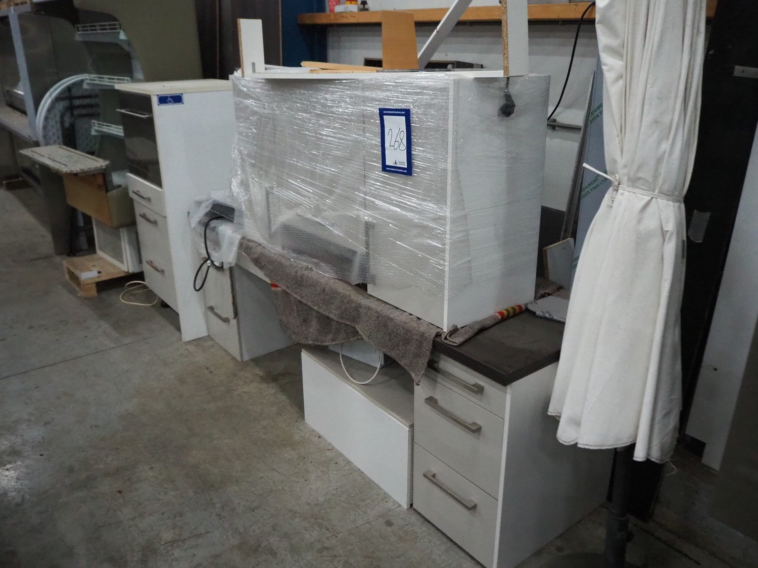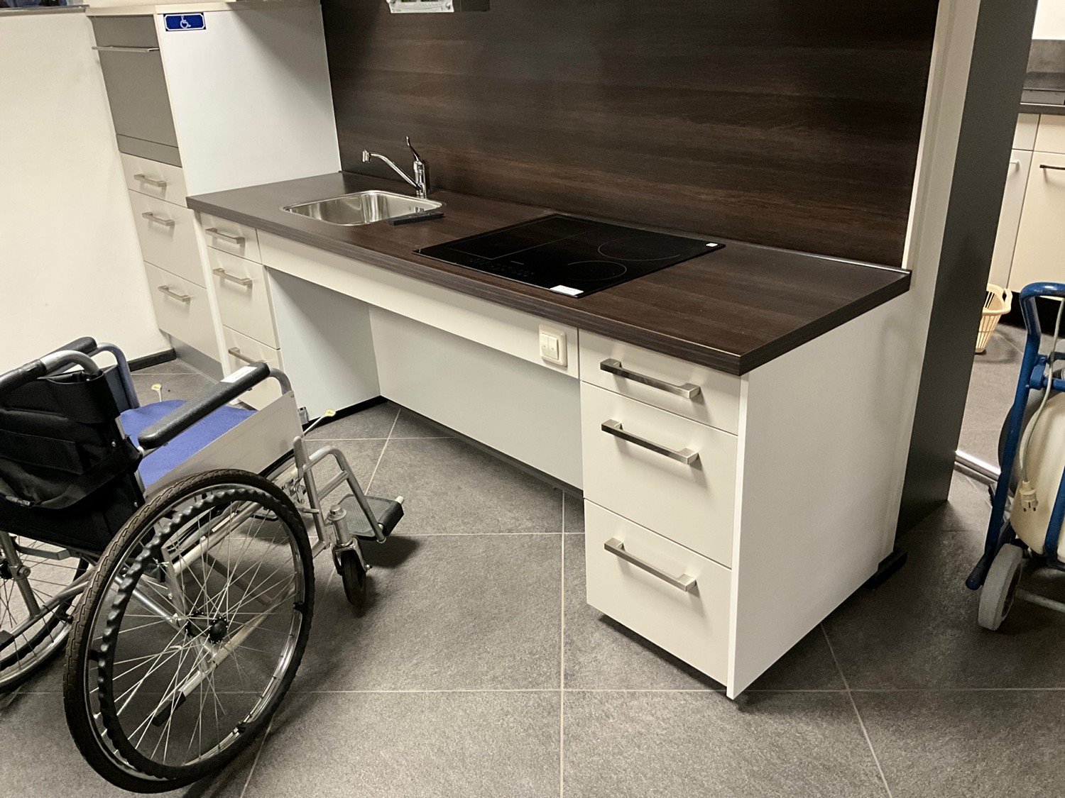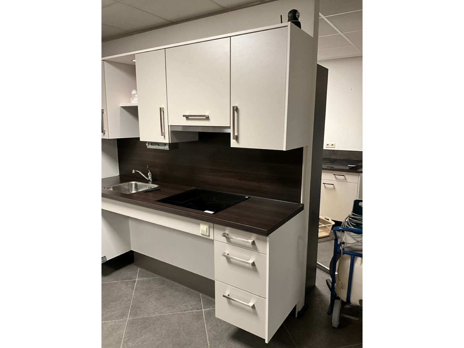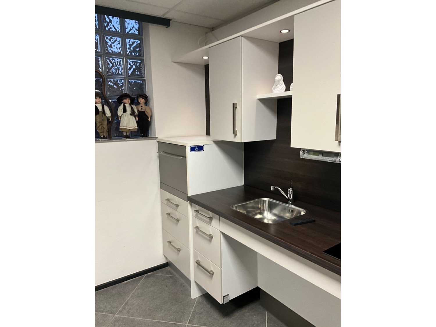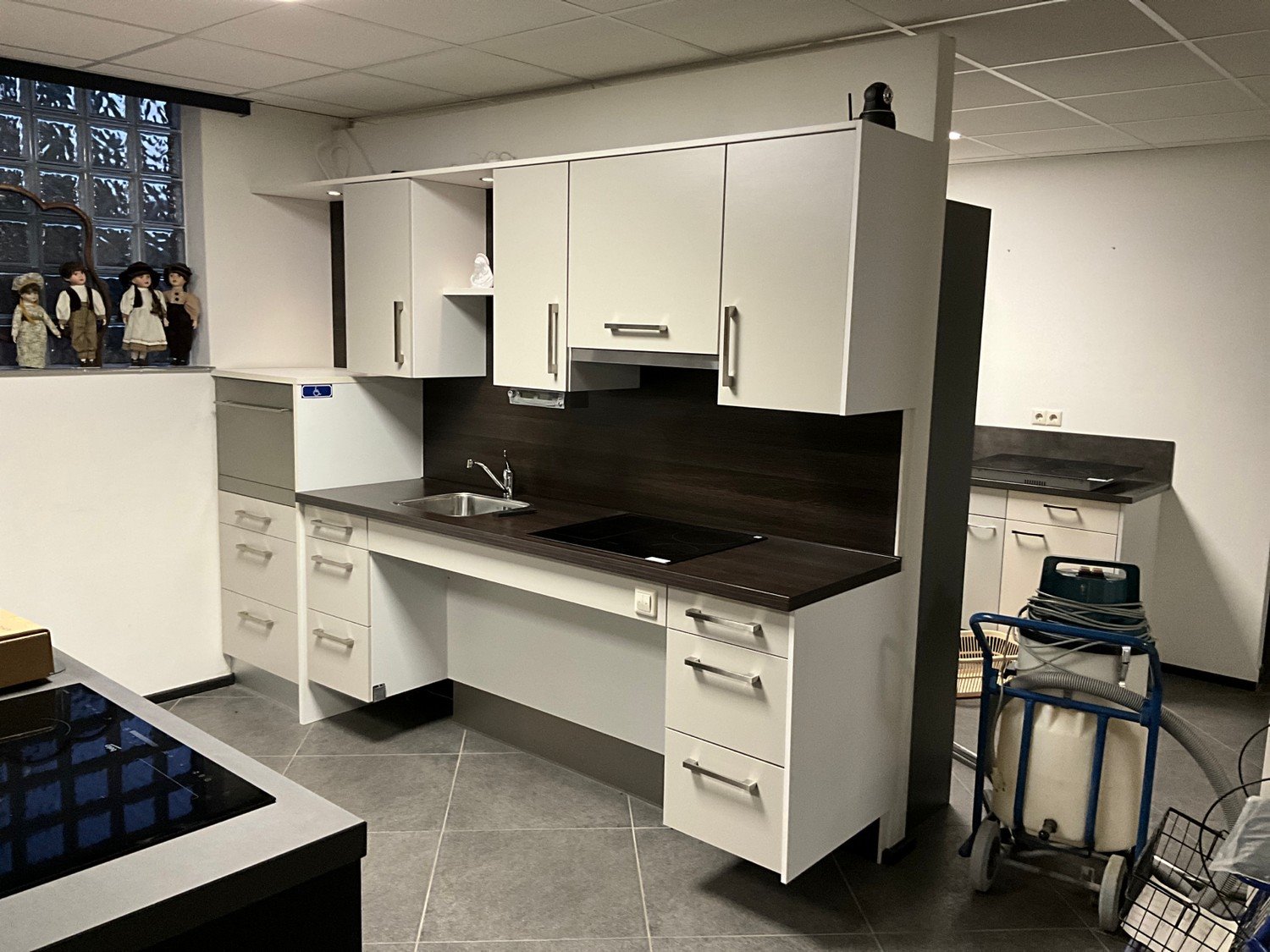 Bribus adjustable kitchen equipment, with Grundig induction hob, type: GIE623471MN, 7.2 kW, Exquisit dishwasher, type: EGSP-6E, dimensions kitchen top: 2220 mm x 610 mm, dimensions cabinet: 360 mm x 1370 mm x 730 mm and 650 mm x 640 mm x 1375 mm, total dimensions kitchen: 2870 mm x 640 mm x 2150 mm. Kavel locatie: Sprokkelveld 5, 6596 DH Milsbeek, Nederland