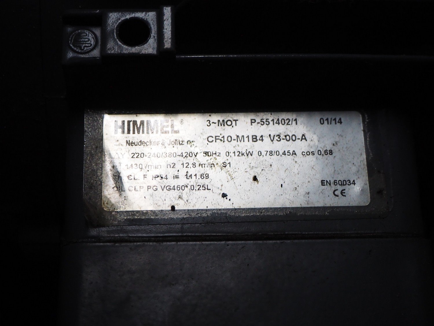 Himmel electro motor, type: CF10-M1B4 V3-00-A, 220-240 V/380-420 V, 50 Hz, 0,12 kW, 0,78/0,45 A, dimensions: (2x) 200 mm x 300 mm x 400 mm. Kavel locatie: Sprokkelveld 5, 6596 DH Milsbeek, Nederland