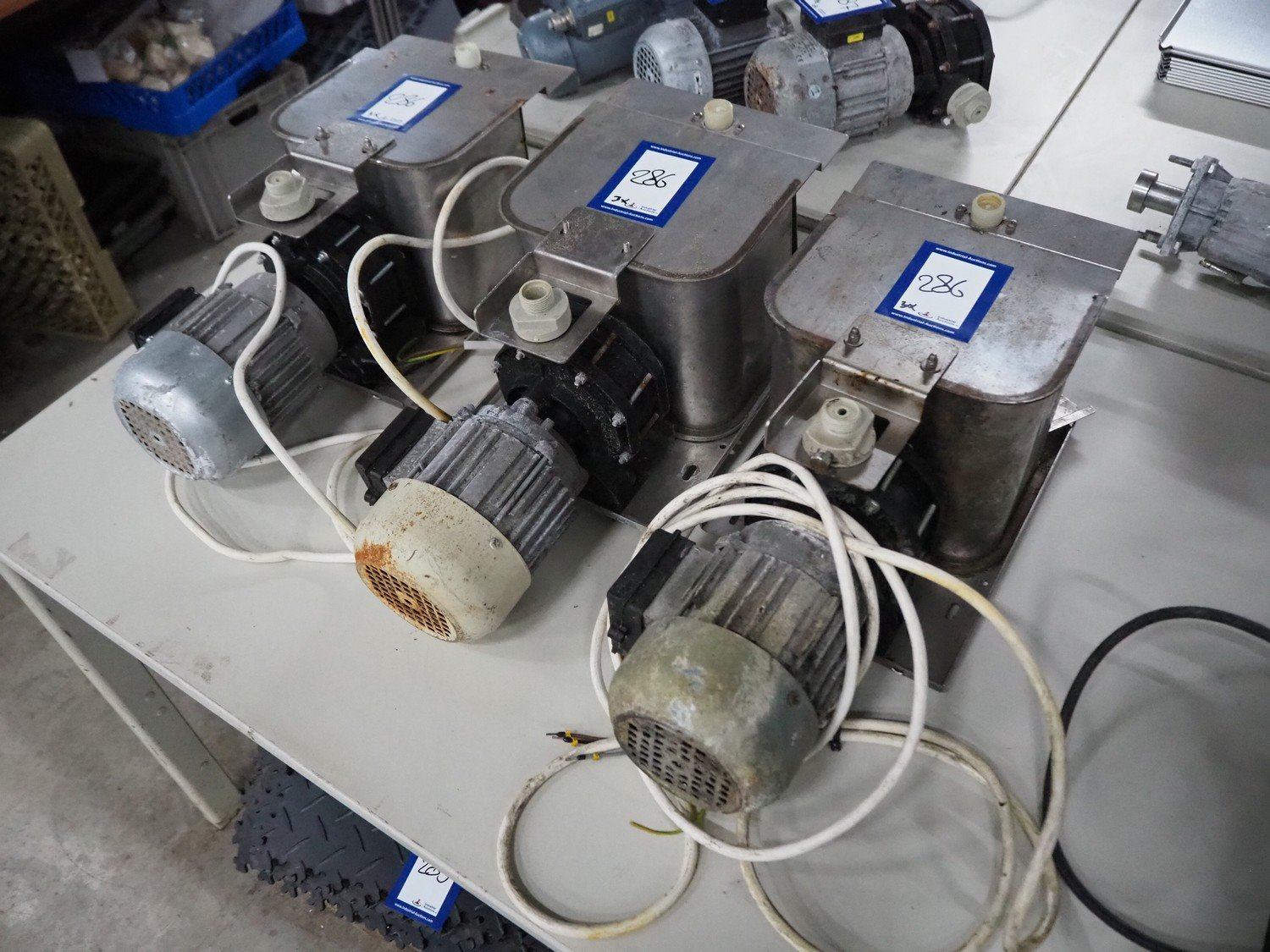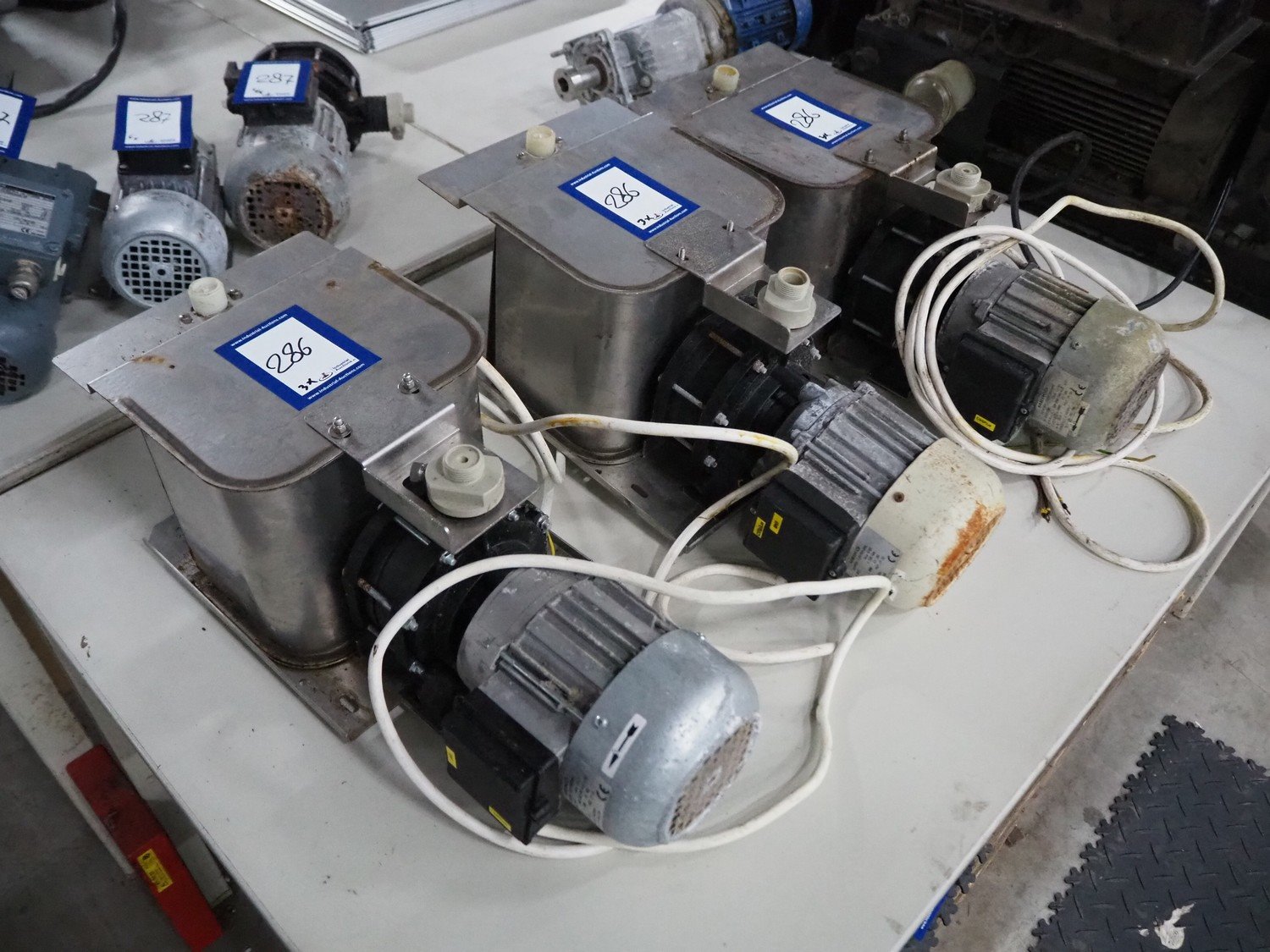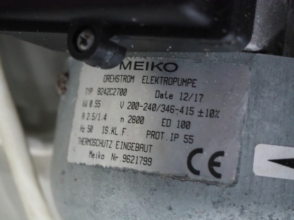 3 Meiko electro pumps, type: B242C2700, 200-240 V, 50 Hz, 2.5/1.4 A, 0.55 kW, dimensions: (3x) 530 mm x 200 mm x 240 mm. Kavel locatie: Sprokkelveld 5, 6596 DH Milsbeek, Nederland