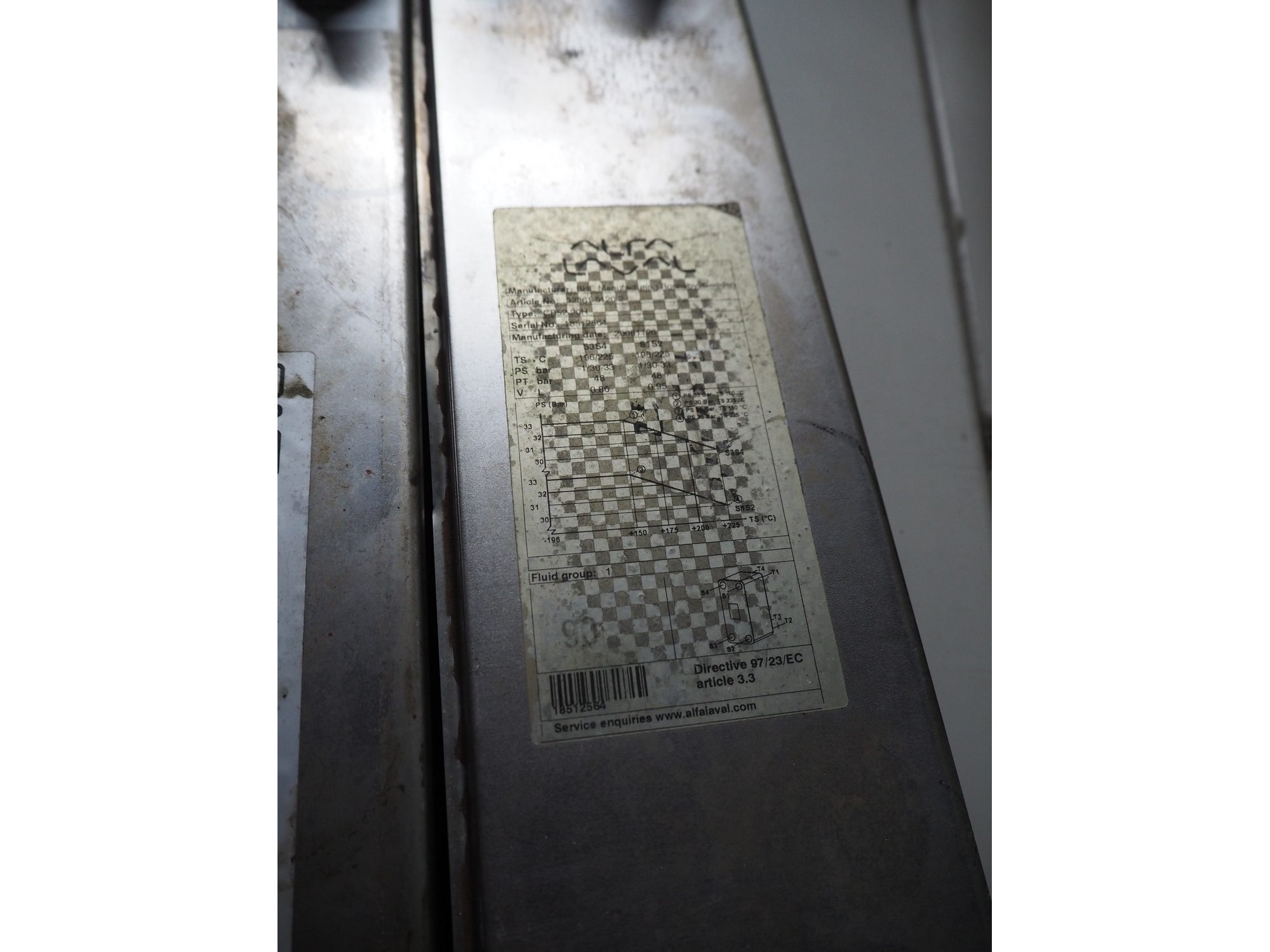 2 heat exchangers, type: 25T, serial number: 112047182004697, year of construction: 2012, dimensions: (2x) 120 mm x 530 mm 200 mm. Kavel locatie: Sprokkelveld 5, 6596 DH Milsbeek, Nederland