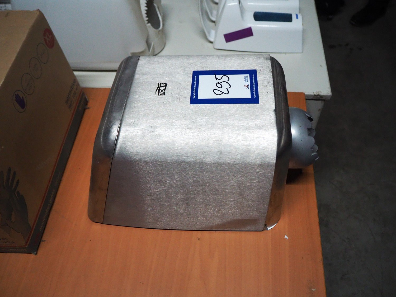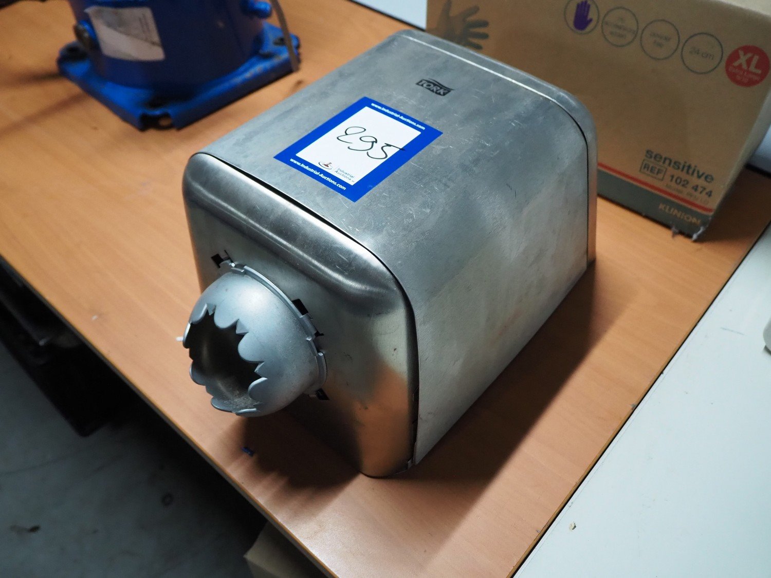 Tork s/s paper dispenser, dimensions: 430 mm x 220 mm x 220 mm. Kavel locatie: Sprokkelveld 5, 6596 DH Milsbeek, Nederland