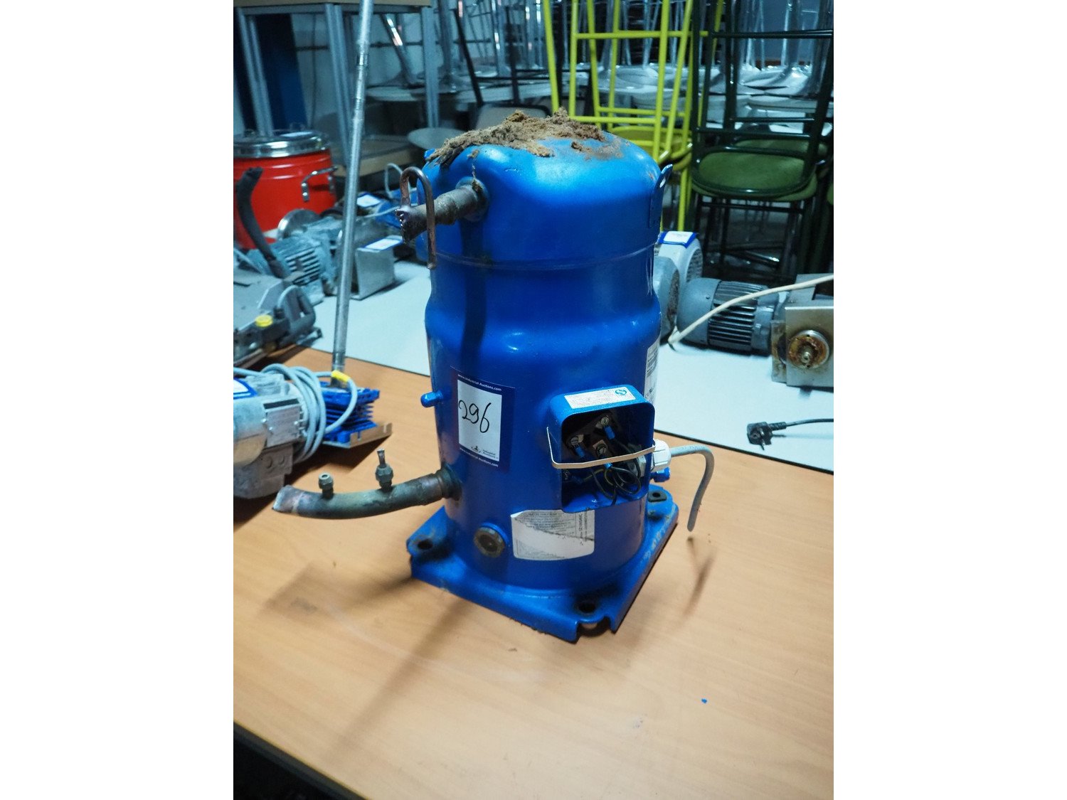 Danfoss compressor, model: SZ100S4VC, serial number: JJ2504072702, 308-400V/460 V, 50/60 Hz, 18 A, 25/31.9 bar, dimensions: 290 mm, 290 mm, 500 mm. Kavel locatie: Sprokkelveld 5, 6596 DH Milsbeek, Nederland