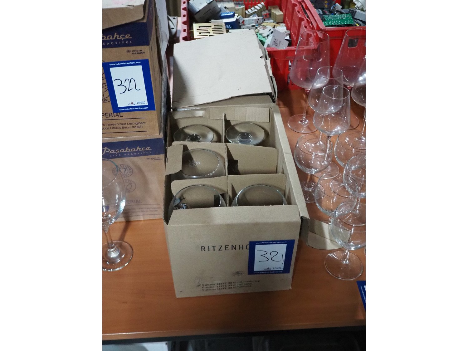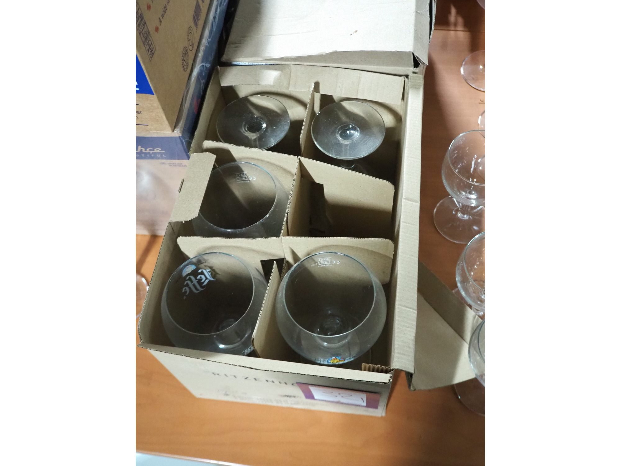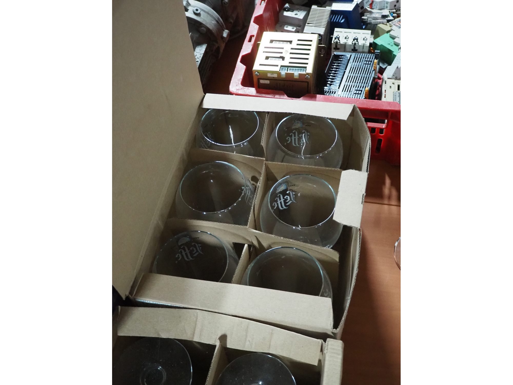 2 boxes with Leffe beer glasses. Kavel locatie: Sprokkelveld 5, 6596 DH Milsbeek, Nederland