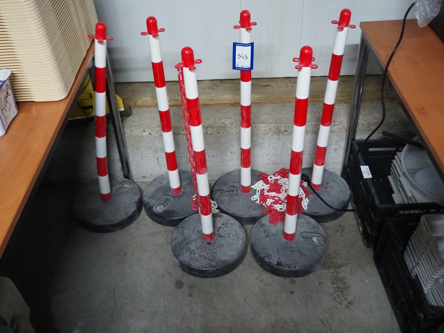 6 plastic protection poles, dimensions: (6x) Ø 250 mm x 870 mm. Kavel locatie: Sprokkelveld 5, 6596 DH Milsbeek, Nederland