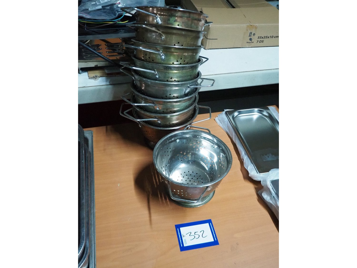 9 s/s colanders, dimensions: (9x) 290 mm x 210 mm x 130 mm. Kavel locatie: Sprokkelveld 5, 6596 DH Milsbeek, Nederland