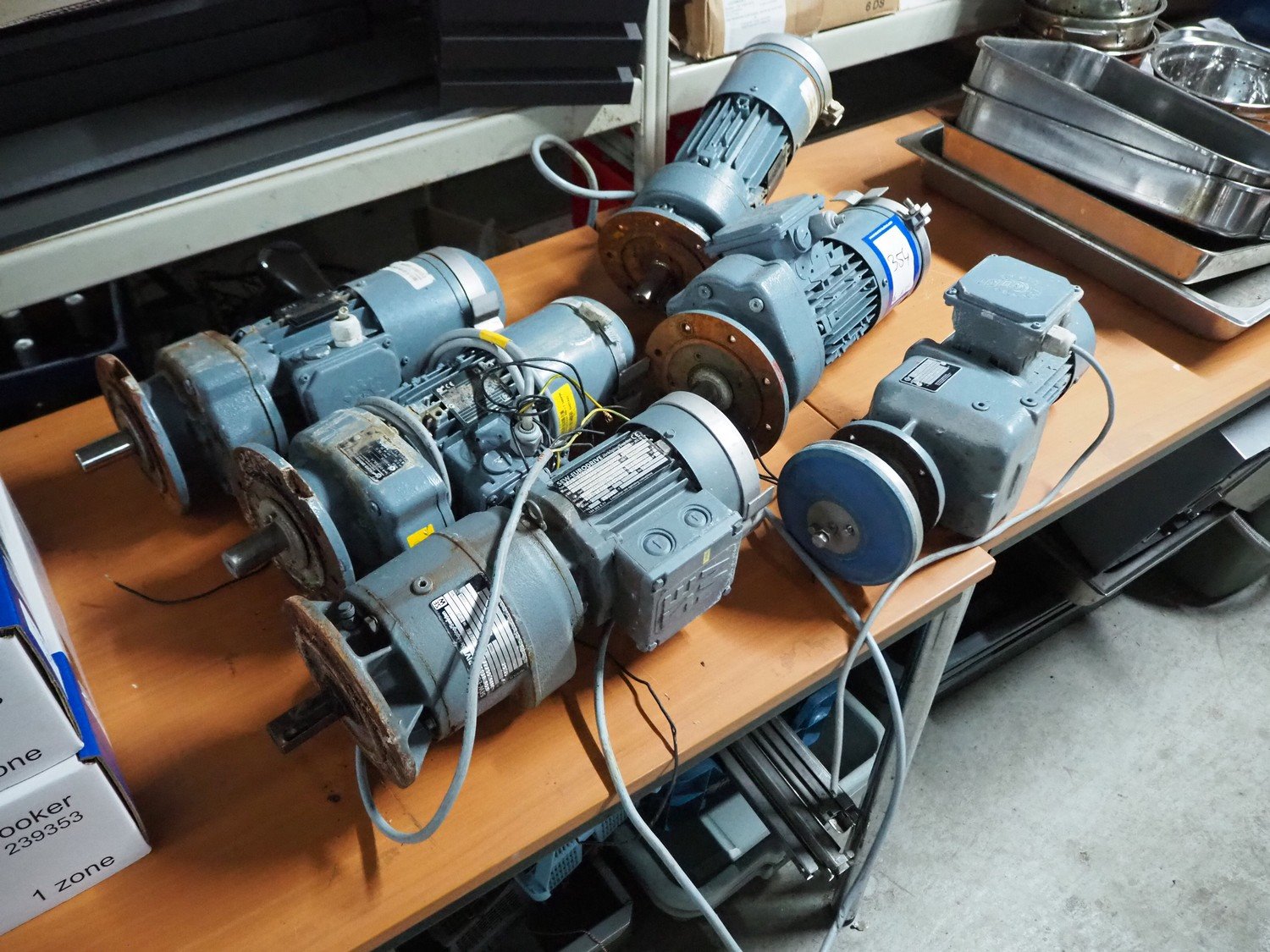 5 Nord Drivesystem AB electro motors and 1 SEW-Eurodrive electro motor, dimensions: 420 mm x 170 mm x 180 mm. Kavel locatie: Sprokkelveld 5, 6596 DH Milsbeek, Nederland