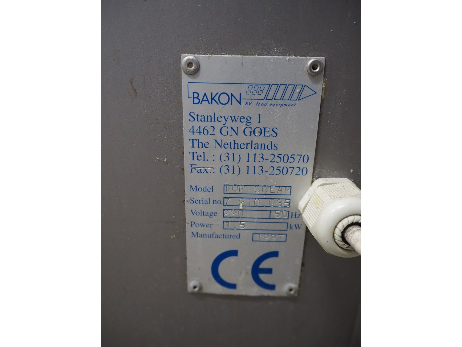 Bakon B.V. mobile whipped cream mixer, model: TOP CREAM, serial number: 7.210.035, year of construction: 1997, 220 V, 50 Hz, 1.5 kW, dimensions inside: ø 345 mm x 430 mm, total dimensions: 780 mm x 500 mm x 1150 mm. Kavel locatie: Looyenbeemd 11, 5652 BH Eindhoven, Nederland