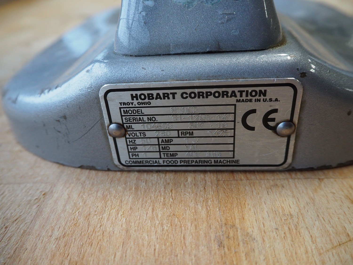 Hobart mixer, model: N50CE, serial number: 31-1285-147, 230 V, 1 Ph, 50 Hz, 1.7 A, dimensions: 350 mm x 250 mm x 430 mm. Incomplete. Kavel locatie: Looyenbeemd 11, 5652 BH Eindhoven, Nederland