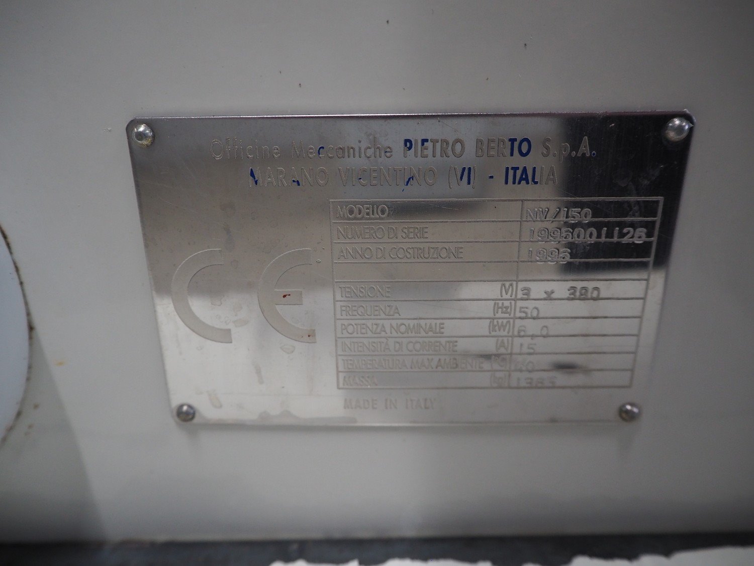 Pietro Berto S.p.A. mixer, model: NV/150, serial number: 1996001126, year of construction: 1996, 380 V, 3 Ph, 50 Hz, 15 A, 6 kW, weight: 1385 kg, volume: 150 liter, dimensions: 1500 mm x 1400 mm x 1850 mm. Kavel locatie: Looyenbeemd 11, 5652 BH Eindhoven, Nederland