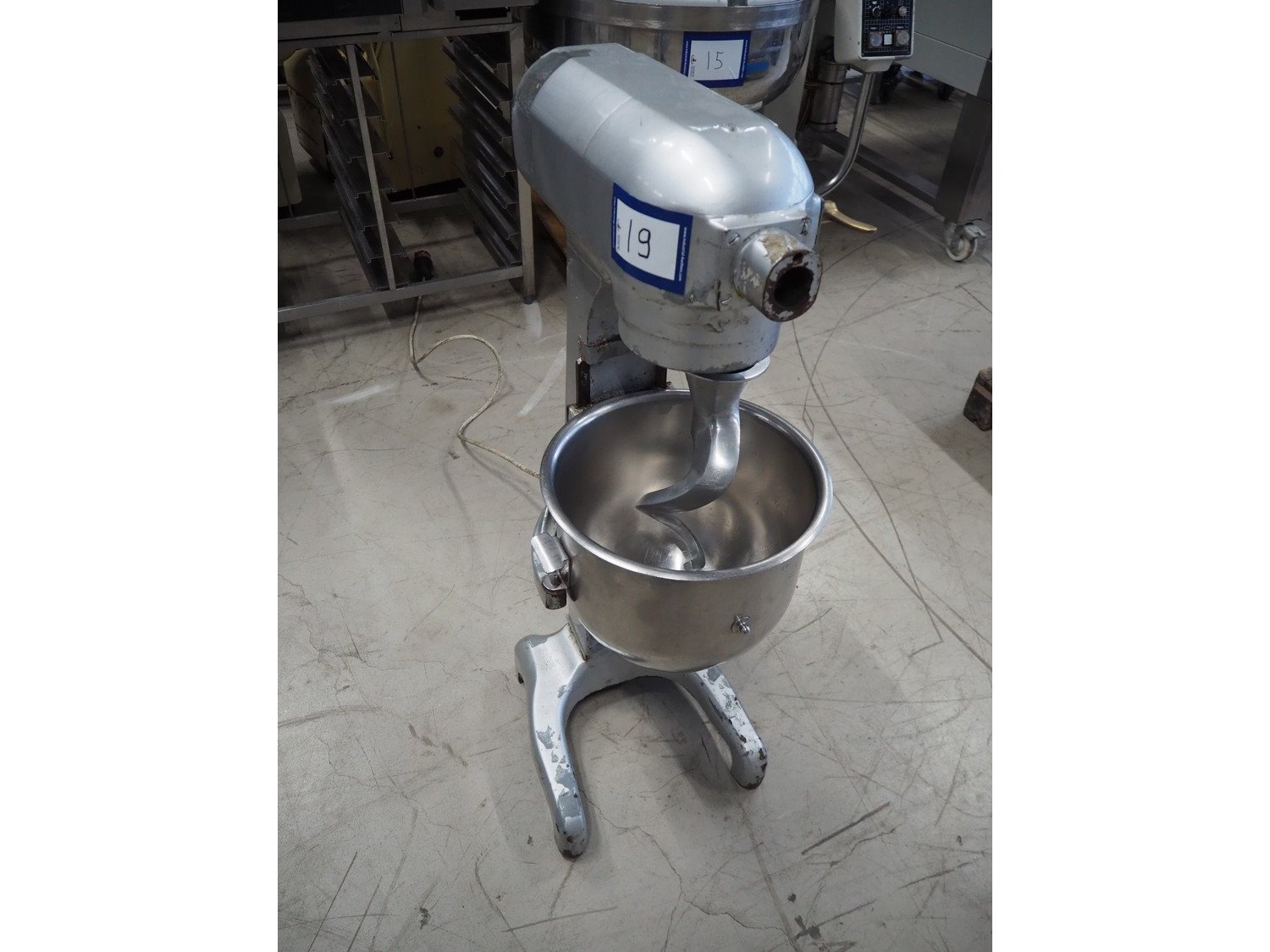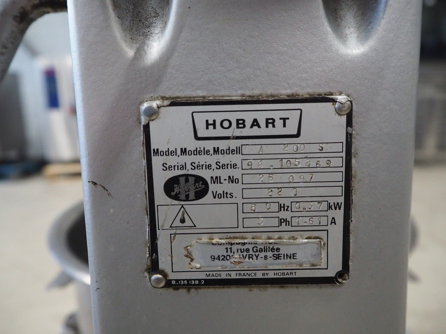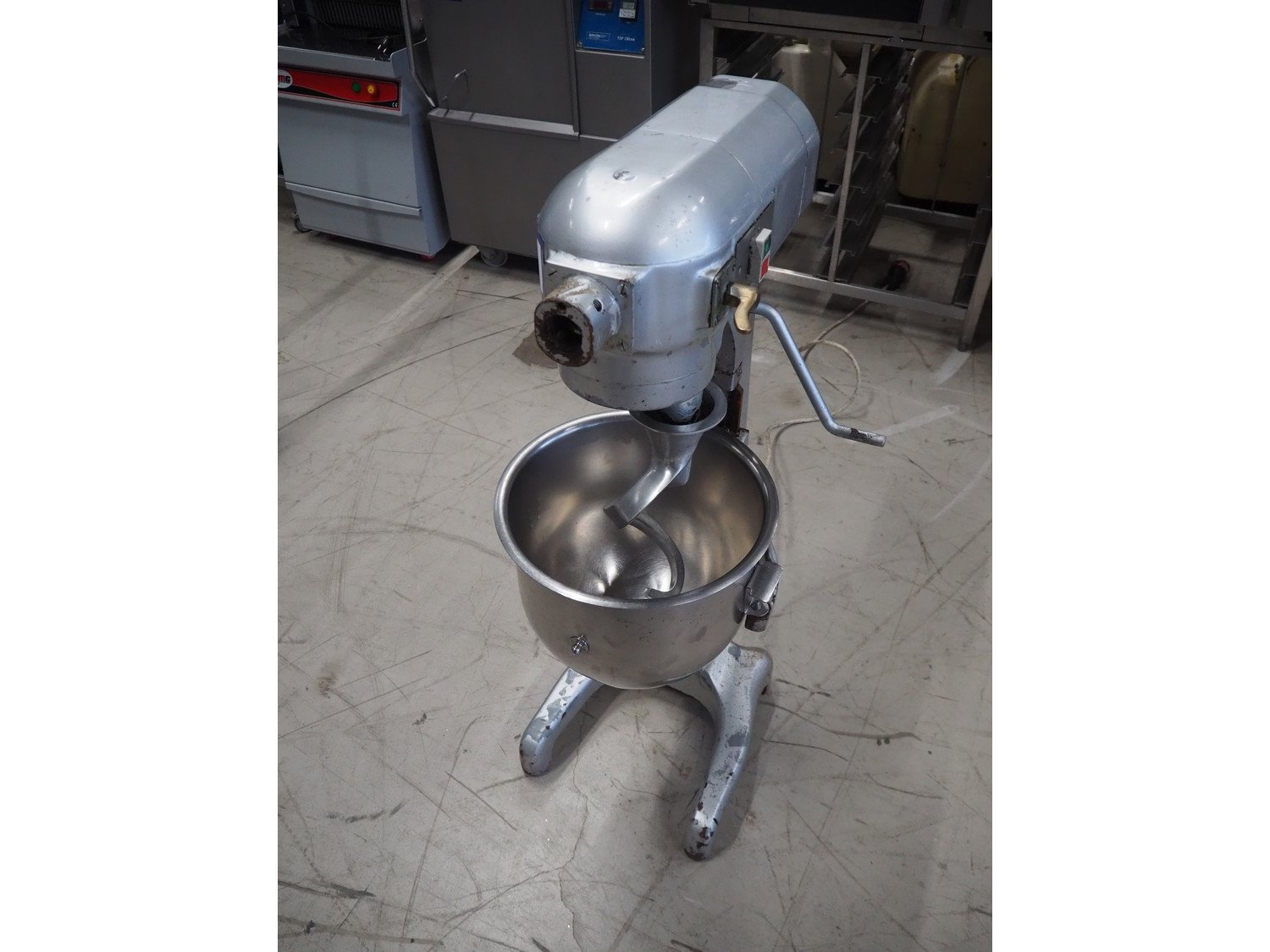 Hobart mixer, model: A 200 S, serial number: 94.105869, 220 V, 3 Ph, 50 Hz, 1.61 A, 0.37 kW, dimensions: 520 mm x 450 mm x 1150 mm. Including flat beater. Kavel locatie: Looyenbeemd 11, 5652 BH Eindhoven, Nederland
