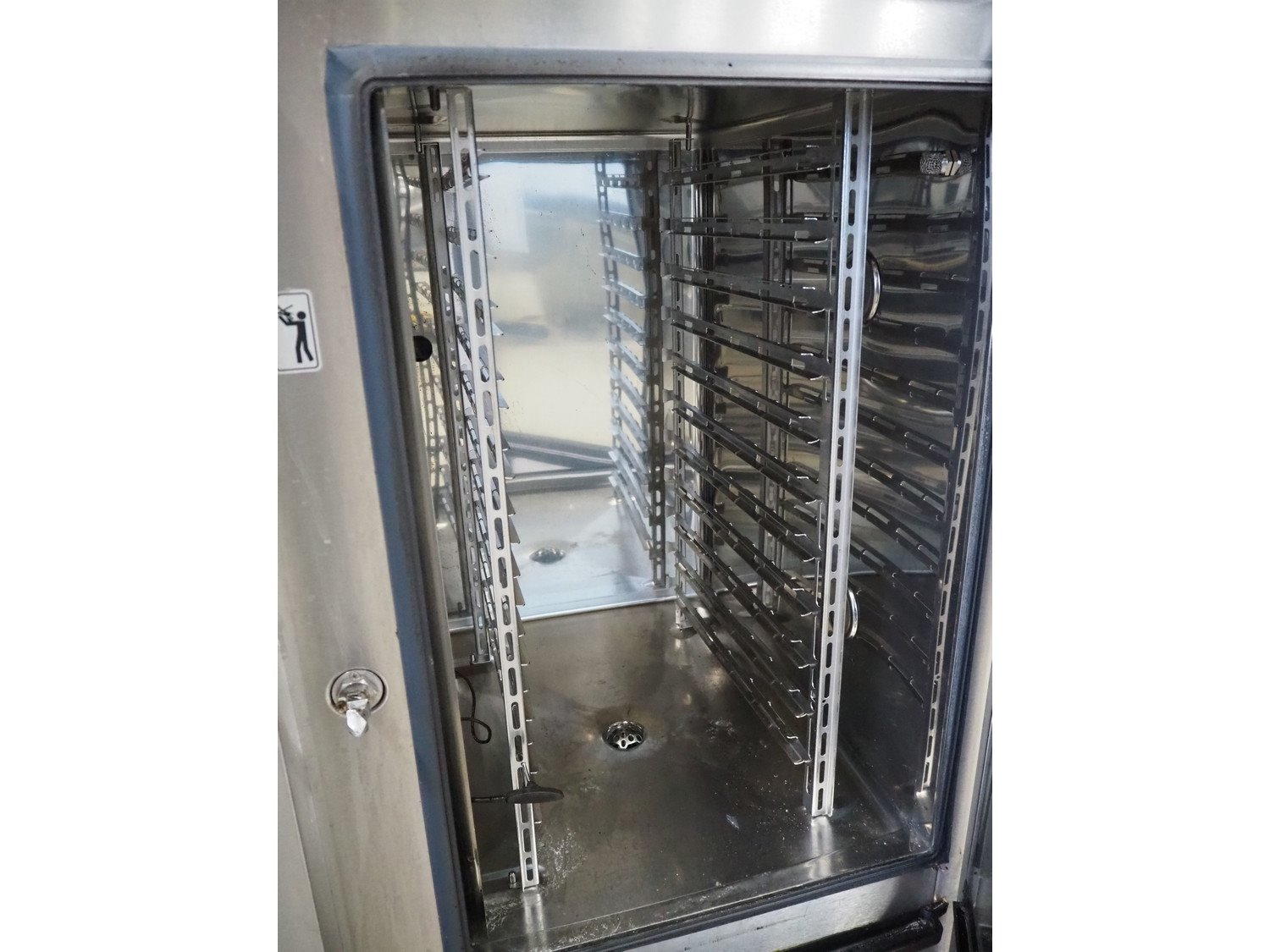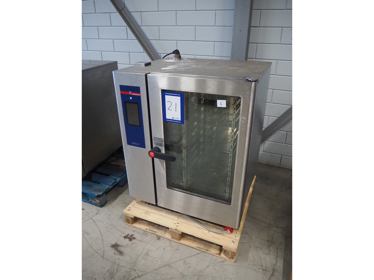 Eloma combi steamer, 11 floors, dimensions floors: (11x) 520 mm x 320 mm, total dimensions: 920 mm x 850 mm x 1150 mm. Kavel locatie: Looyenbeemd 11, 5652 BH Eindhoven, Nederland
