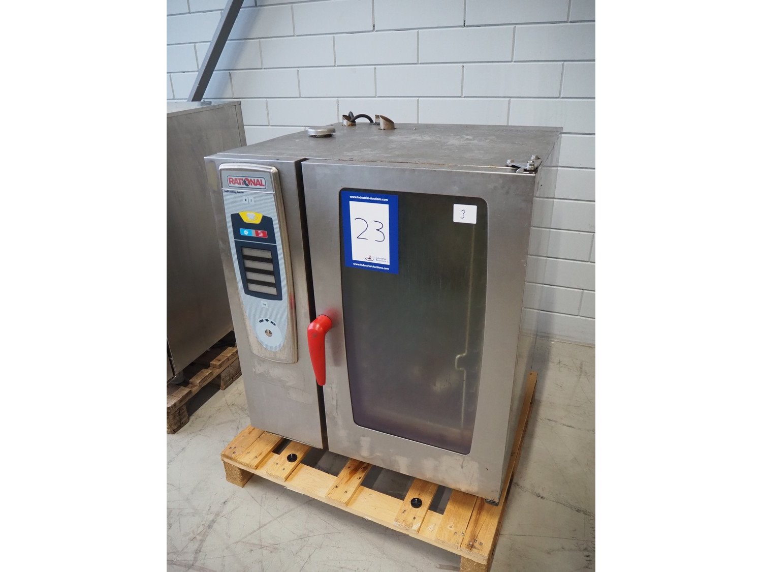 Rational SelfCookingCenter combi steamer, model: 101G, 10 floors, dimensions floors: (10x) 540 mm x 330 mm, total dimensions: 850 mm x 830 mm x 1050 mm. Defect. Kavel locatie: Looyenbeemd 11, 5652 BH Eindhoven, Nederland