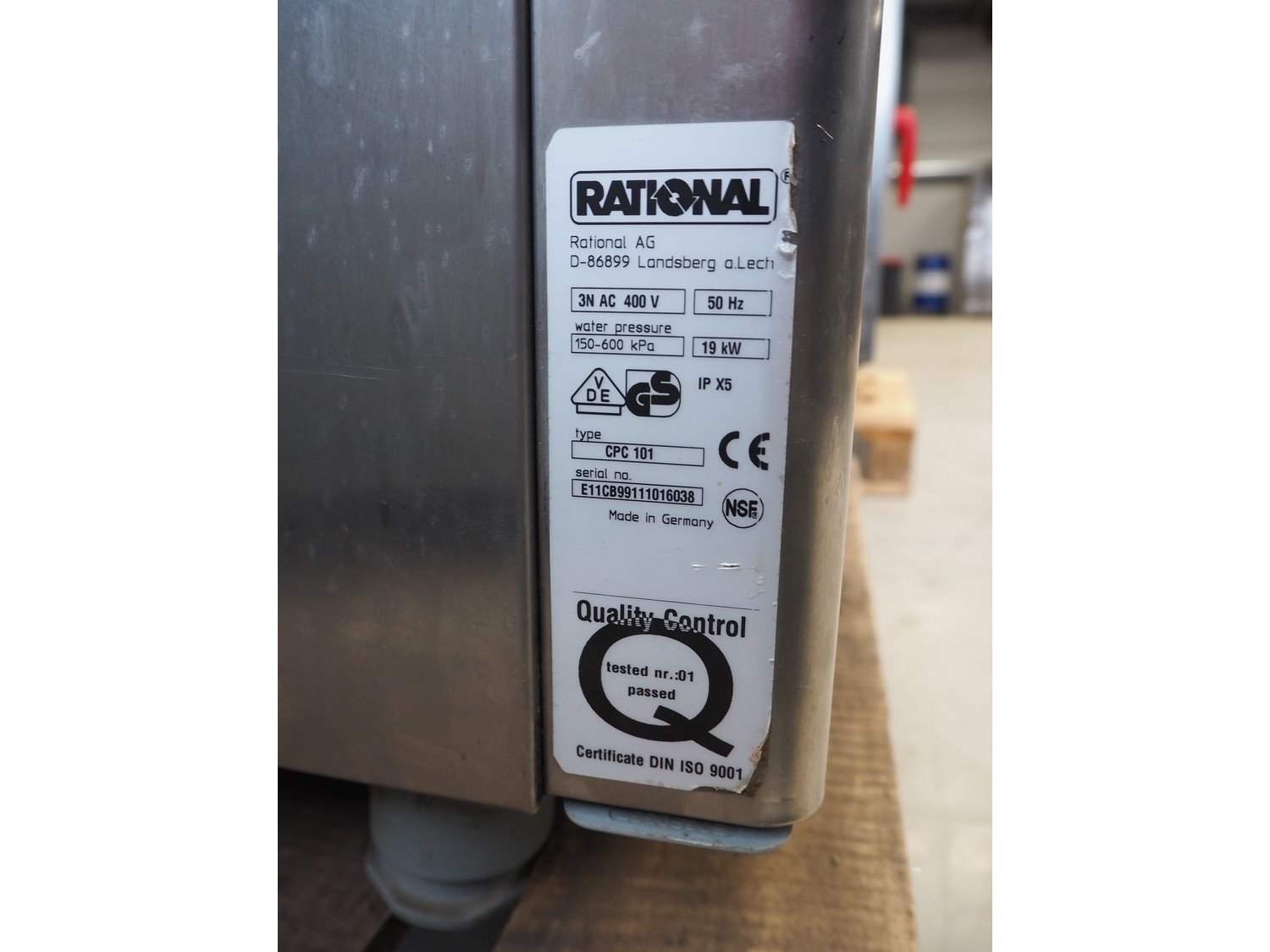 Rational combi steamer, type: CPC 101, serial number: E11CB99111016038, 400 V, 3 Ph, 50 Hz, 19 kW, water pressure: 150-600 kPa, 10 floors, dimensions floors: (10x) 535 mm x 325 mm, total dimensions: 900 mm x 820 mm x 1100 mm. Defect. Kavel locatie: Looyenbeemd 11, 5652 BH Eindhoven, Nederland