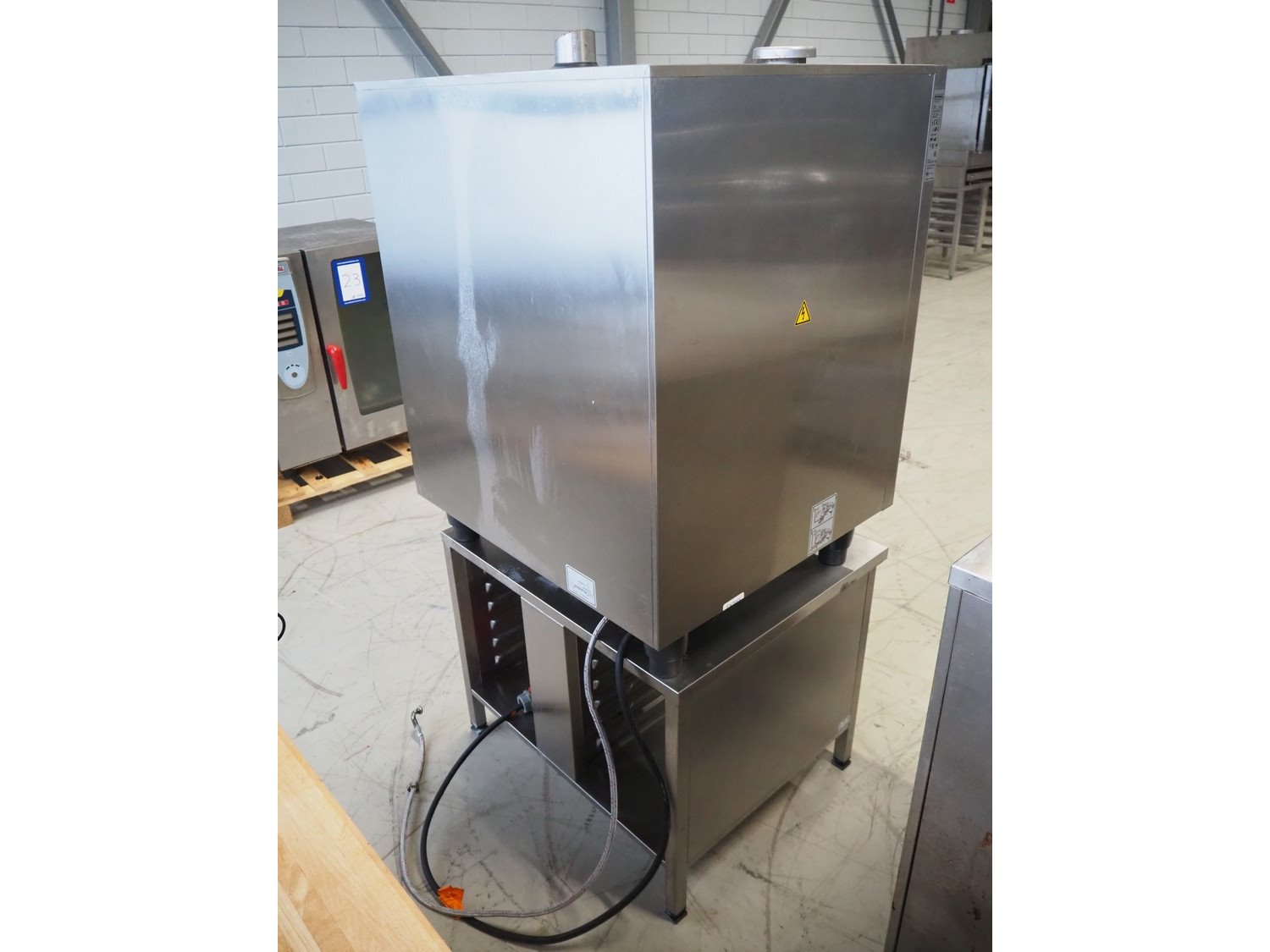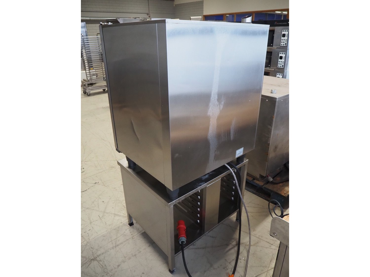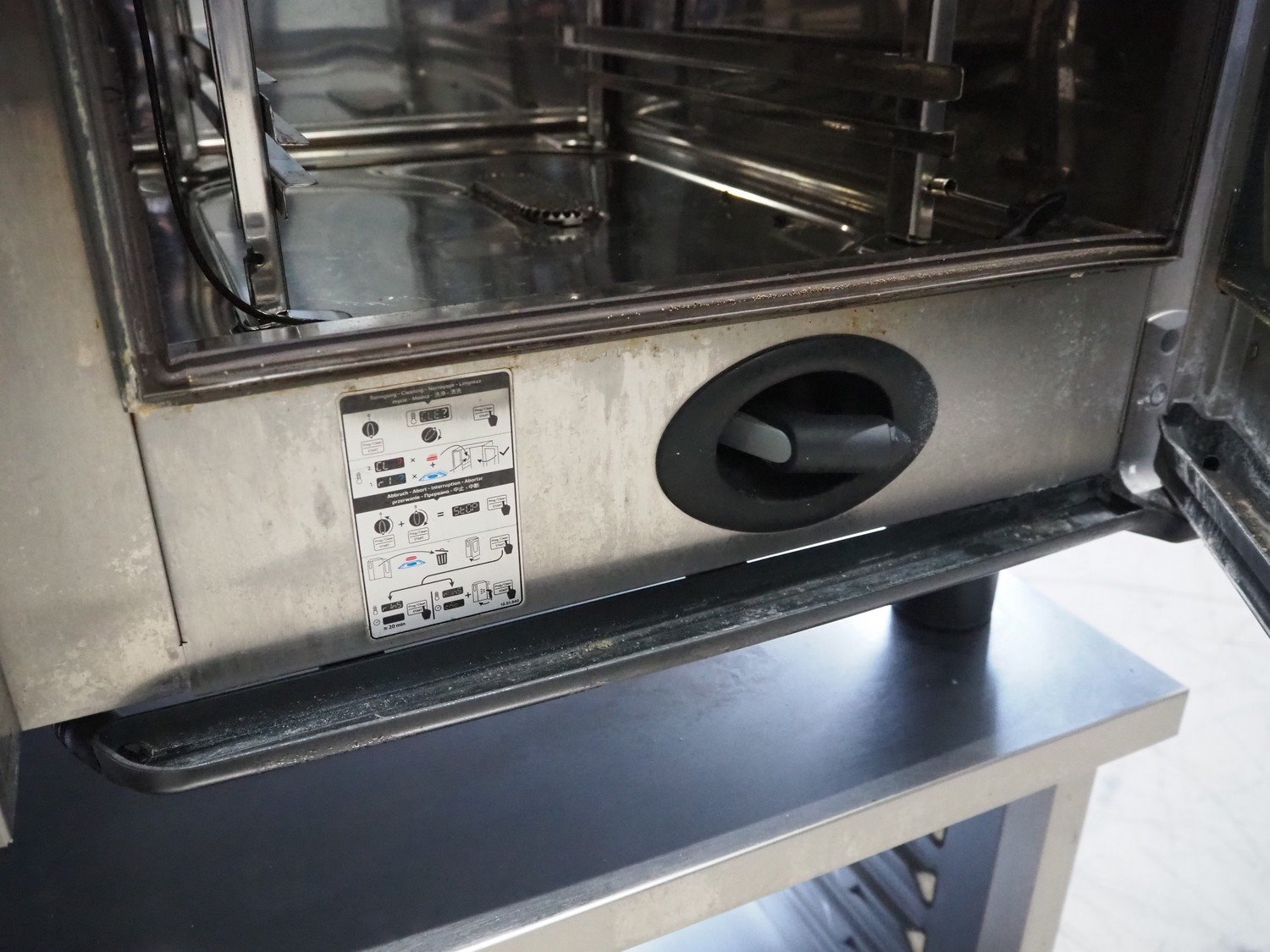 Rational combi steamer, model: CMP 101, serial number: E11MI18112713345, 400 V, 3 Ph, 50/60 Hz, 18.6 kW, water pressure: 150-600 kPa, 10 floors, dimensions floors: (10x) 530 mm x 330 mm, total dimensions: 850 mm x 830 mm x 1770 mm. Kavel locatie: Looyenbeemd 11, 5652 BH Eindhoven, Nederland