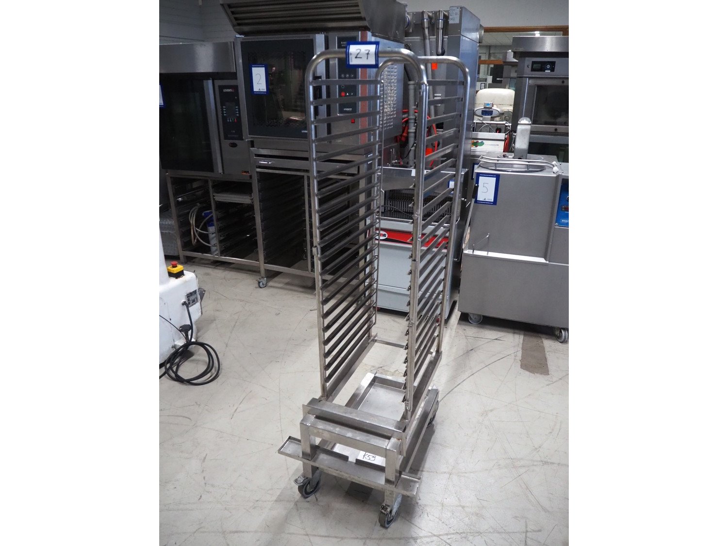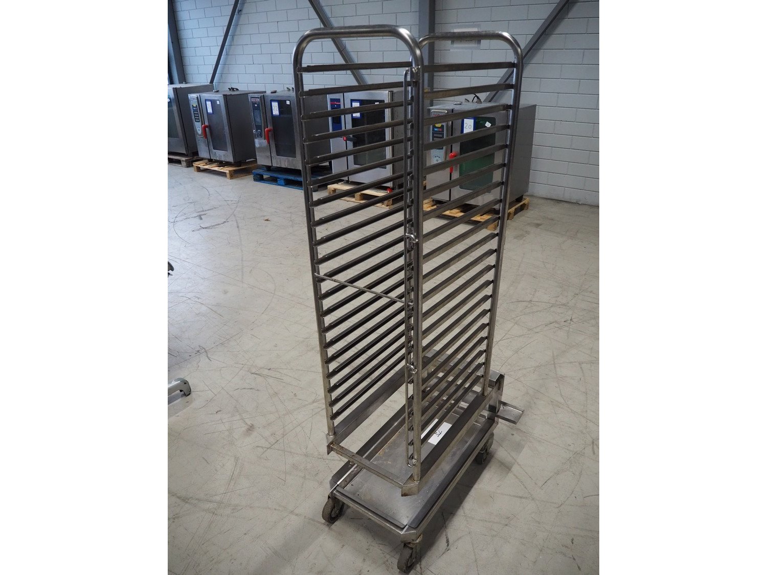 S/s trolley, 20 floors, dimensions floors: (20x) 535 mm x 330 mm, total dimensions: 780 mm x 575 mm x 1700 mm. Kavel locatie: Looyenbeemd 11, 5652 BH Eindhoven, Nederland