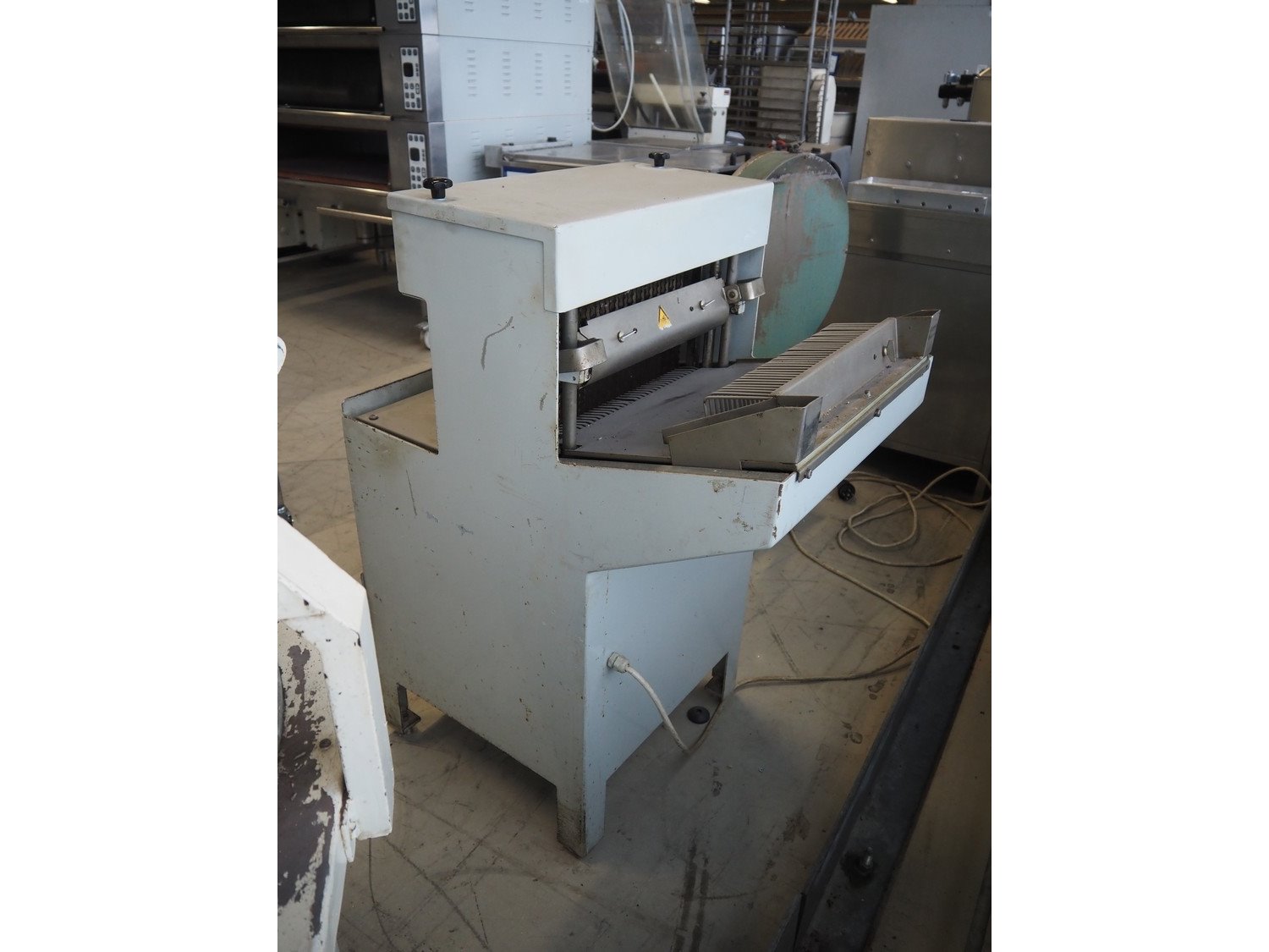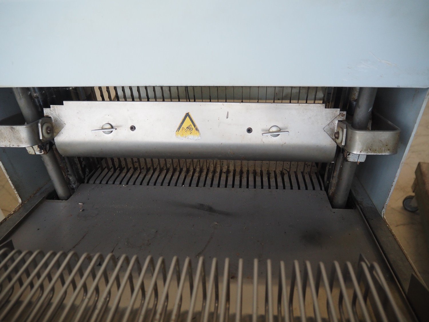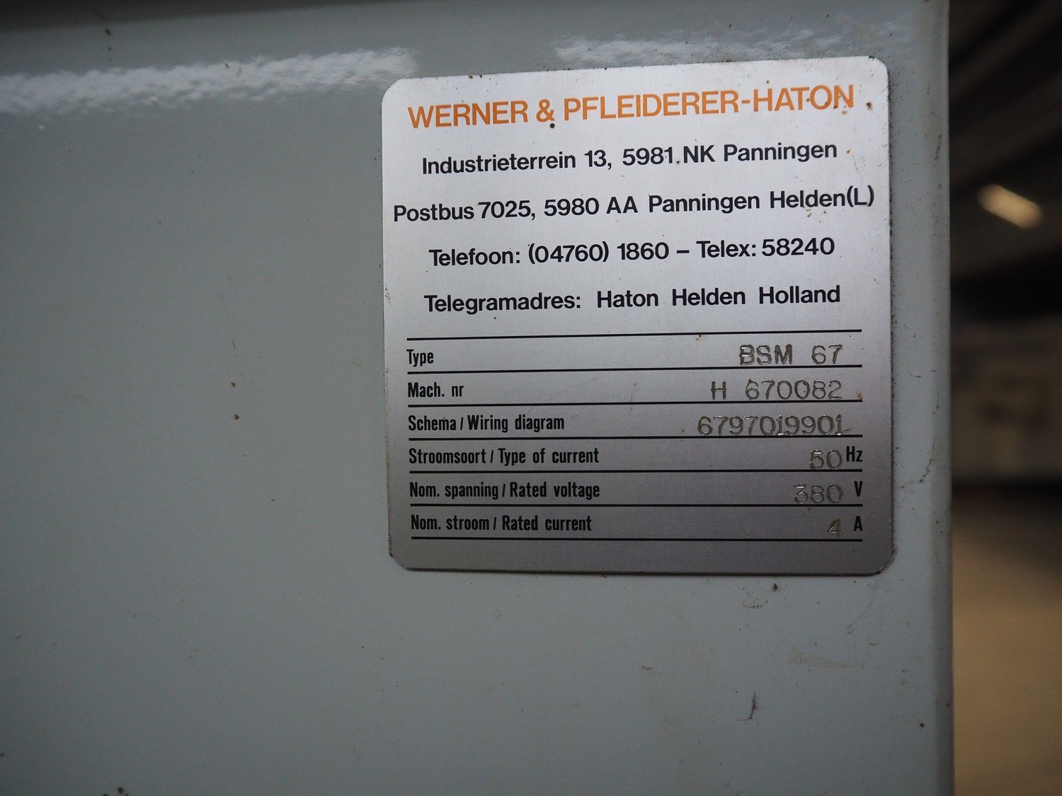 Werner & Pfleiderer-Haton bread slicer, type: BSM 67, machine number: H 670082, 380 V, 50 Hz, 4 A, 34 knives, distance between knives: 14 mm, working width: 420 mm, total dimensions: 570 mm x 820 mm x 1160 mm. Kavel locatie: Looyenbeemd 11, 5652 BH Eindhoven, Nederland