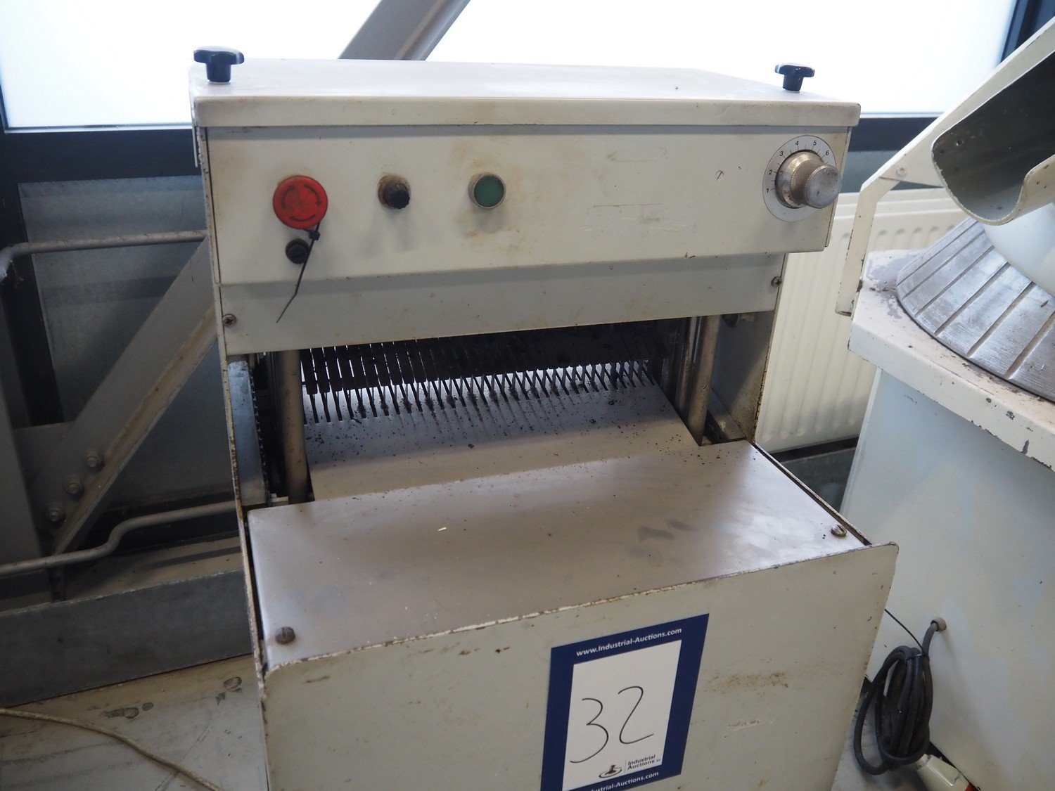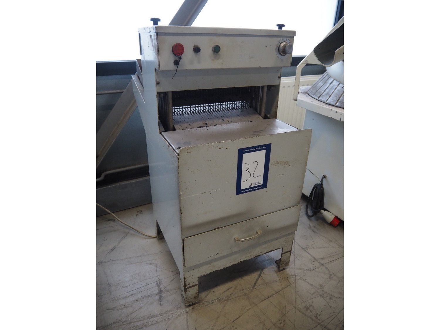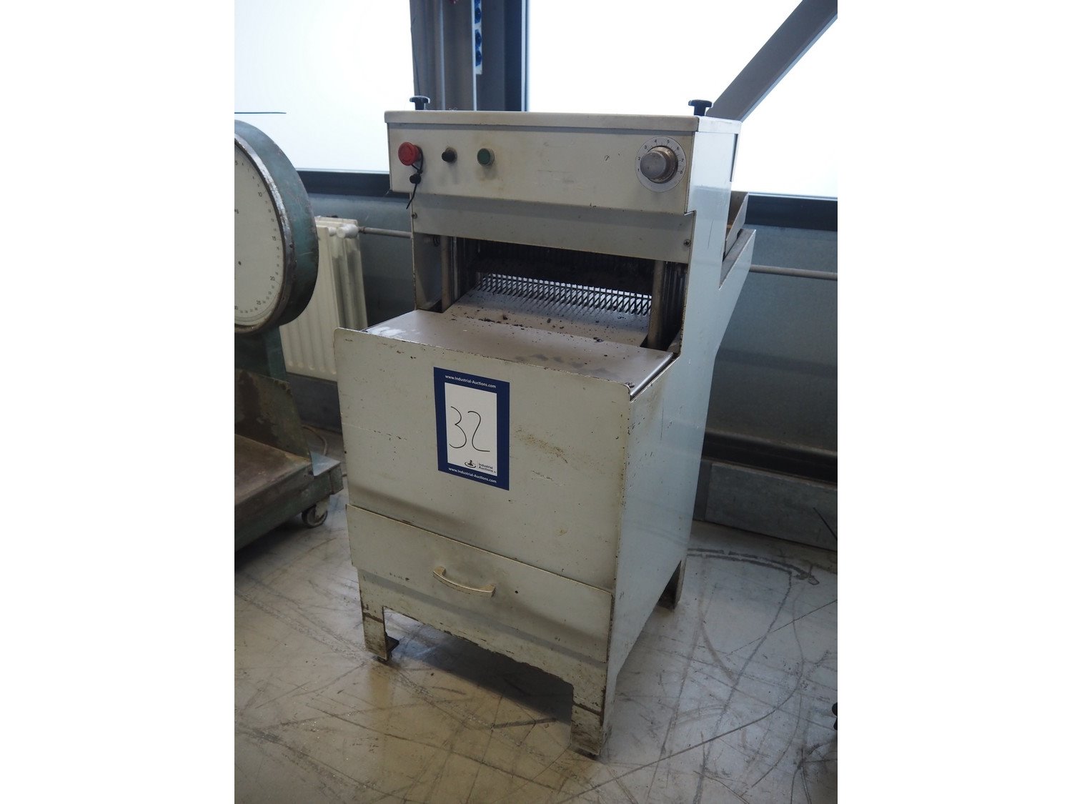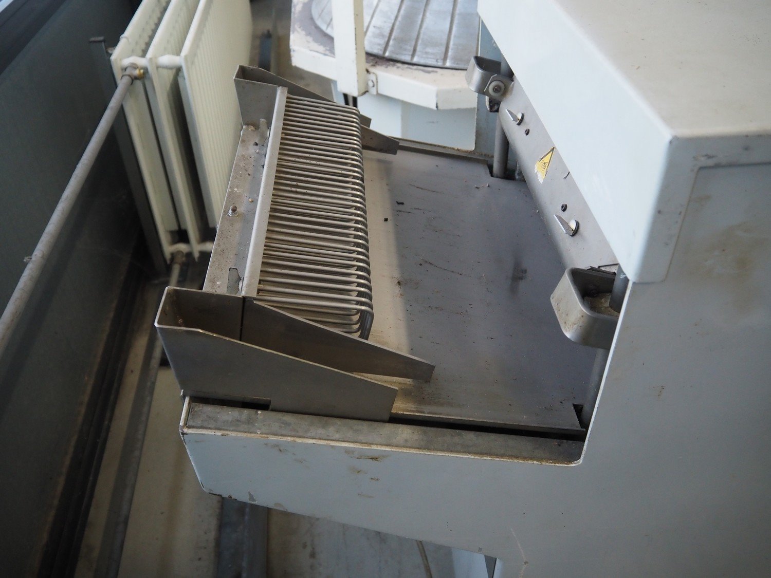 Werner & Pfleiderer-Haton bread slicer, type: BSM 67, machine number: H 670082, 380 V, 50 Hz, 4 A, 34 knives, distance between knives: 14 mm, working width: 420 mm, total dimensions: 570 mm x 820 mm x 1160 mm. Kavel locatie: Looyenbeemd 11, 5652 BH Eindhoven, Nederland