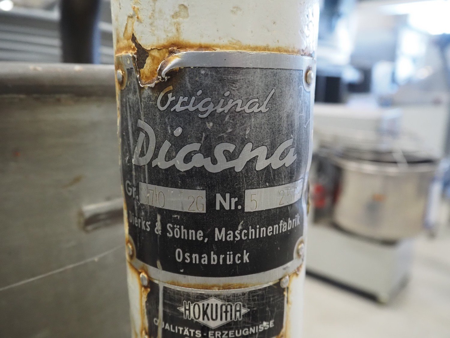 Diosna mobile mixer, type: S70 2G, number: 5 250, steel bowl, inside dimensions: Ø 715 mm x 350 mm, total dimensions: 840 mm x 900 mm x 1200 mm. Kavel locatie: Looyenbeemd 11, 5652 BH Eindhoven, Nederland