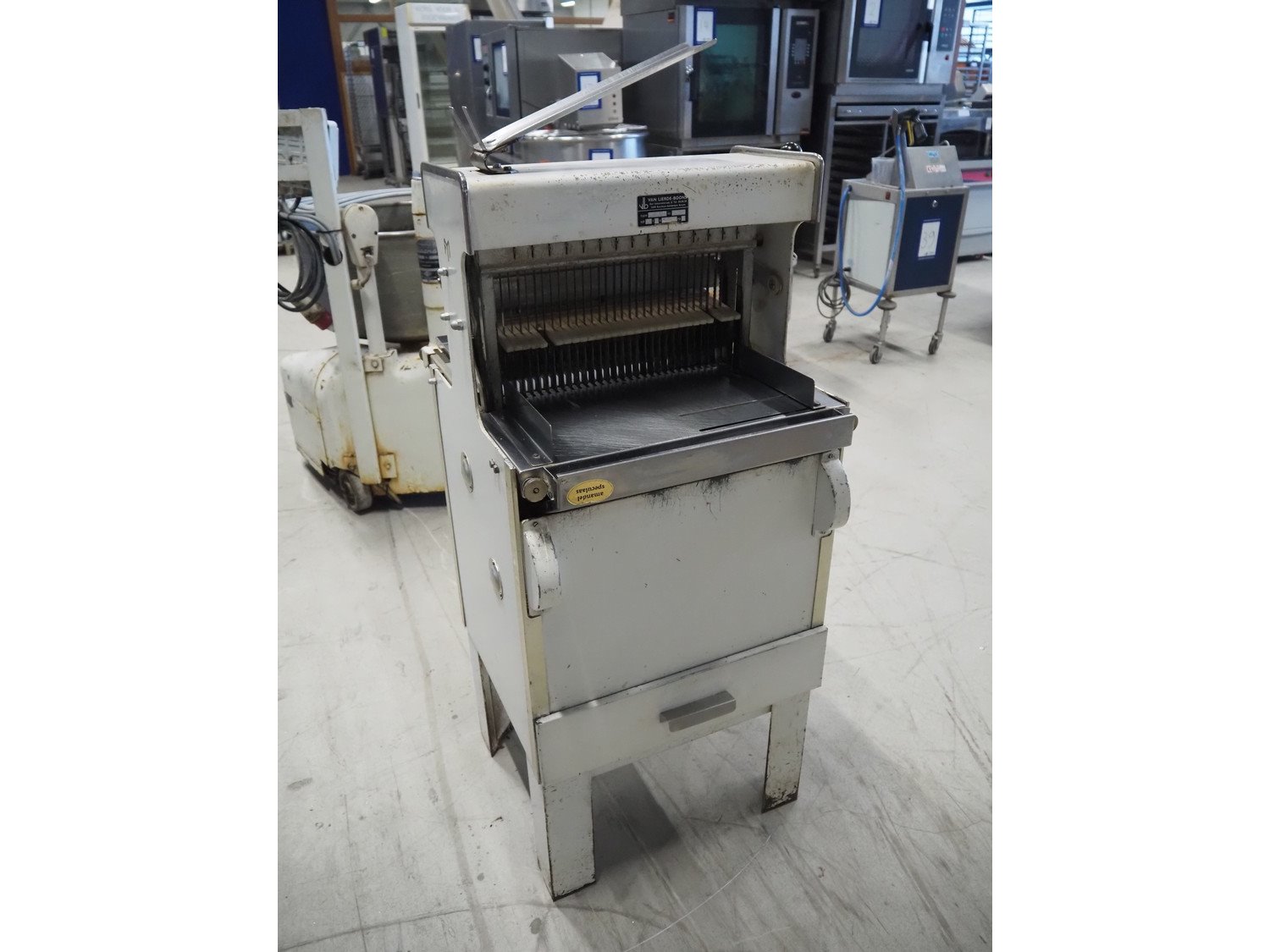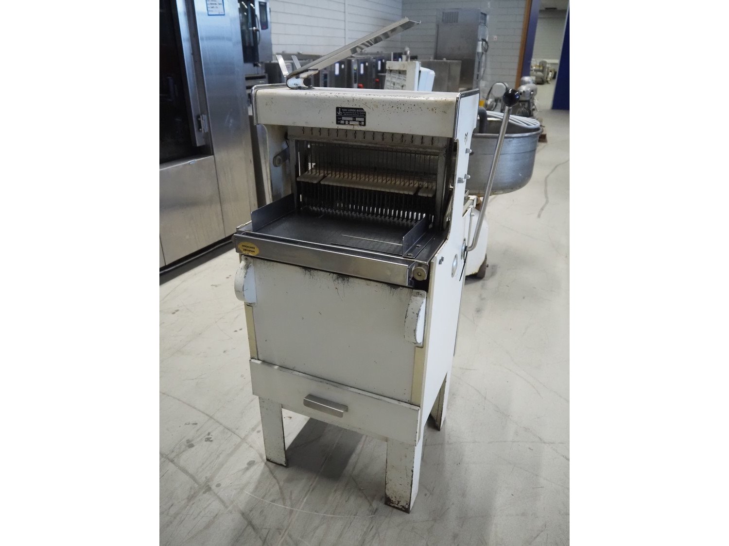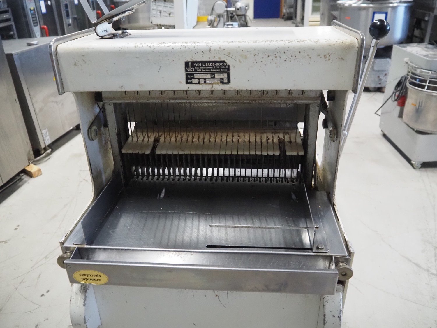 VLB bread slicer, type: VLB 40/125, number: 80167, 110/220 V, 1 Ph, 50 Hz, 30 knives, distance between knives: 12.5 mm, working width: 570 mm x 650 mm x 1300 mm. Kavel locatie: Looyenbeemd 11, 5652 BH Eindhoven, Nederland