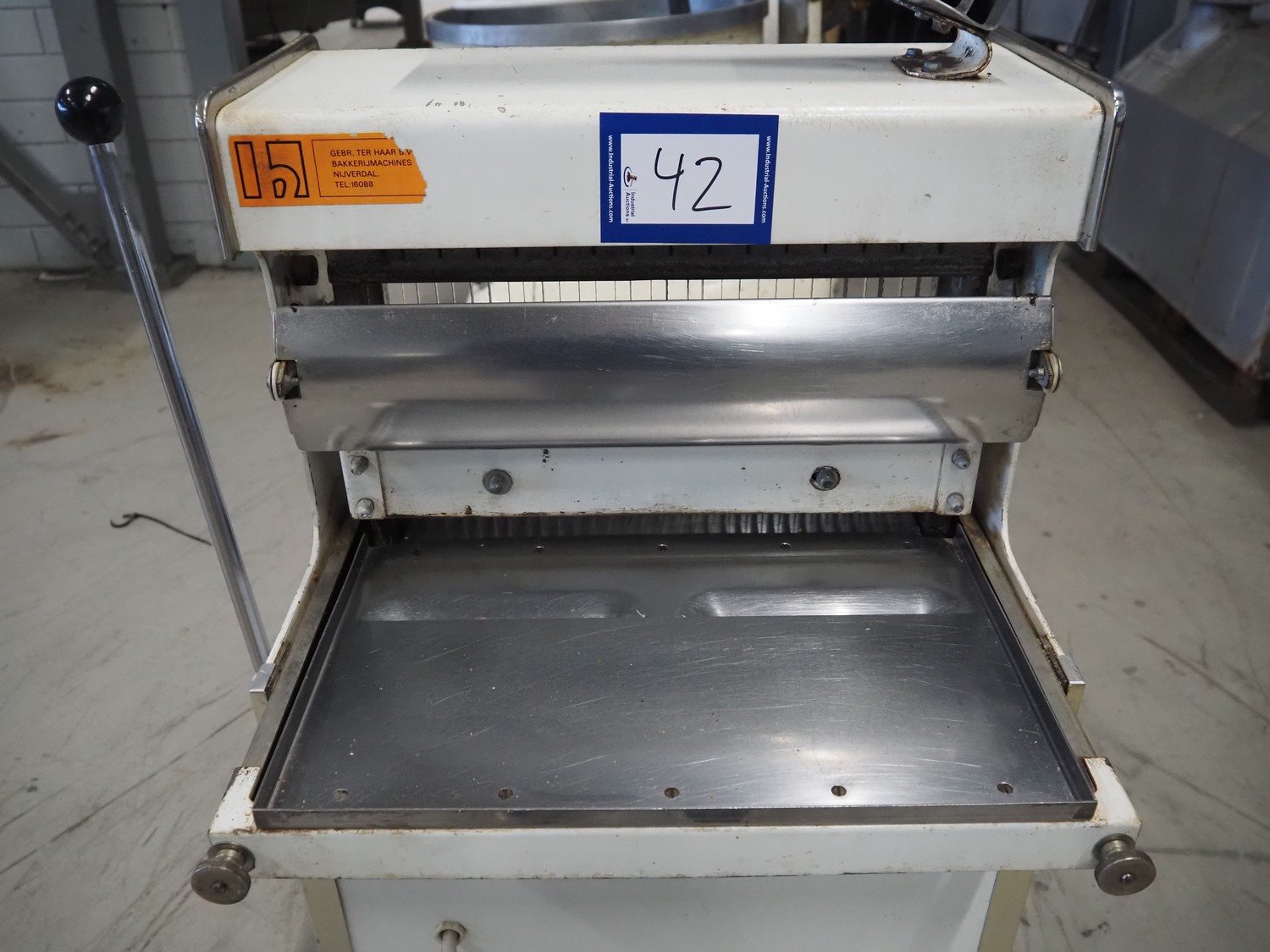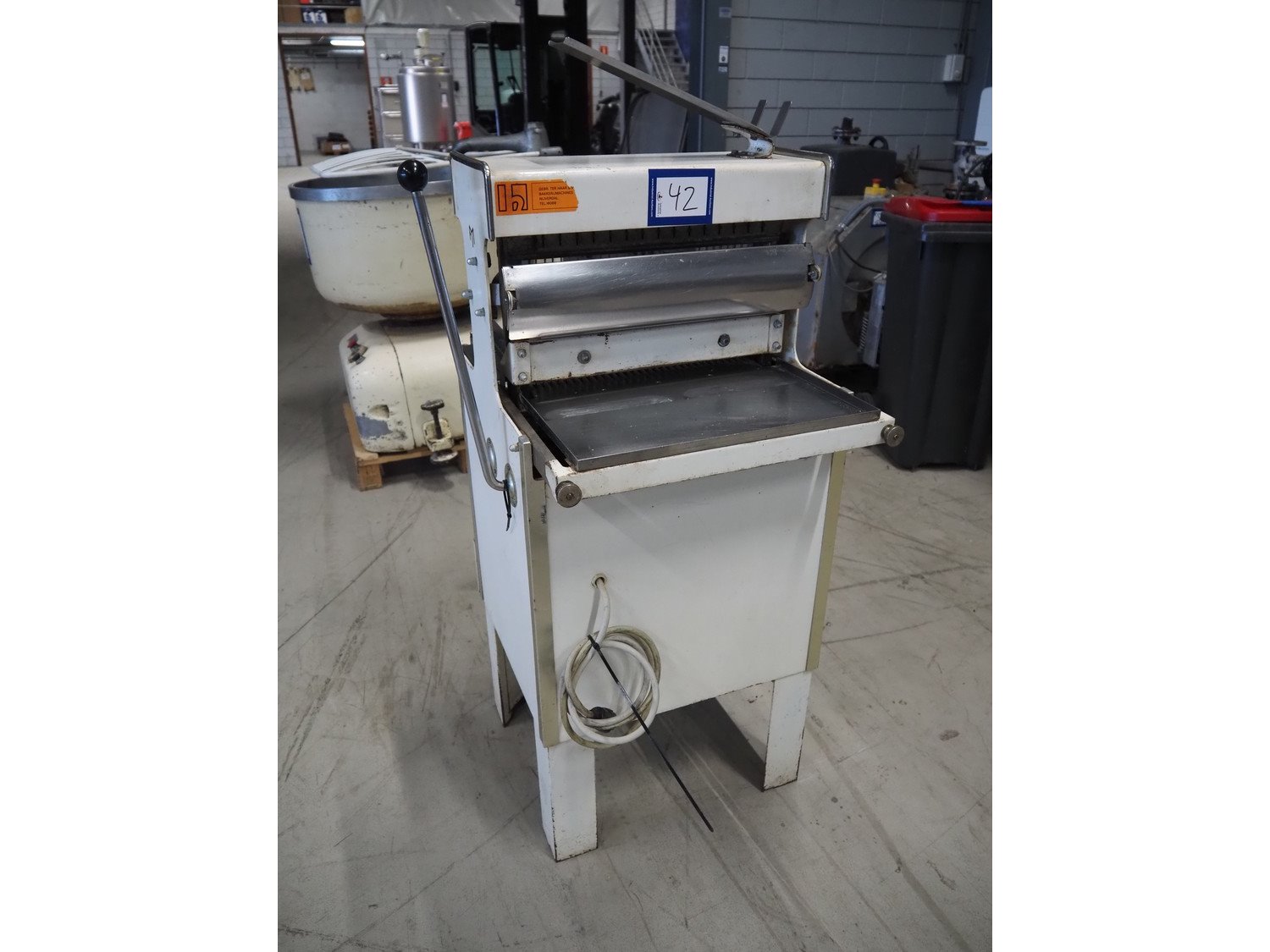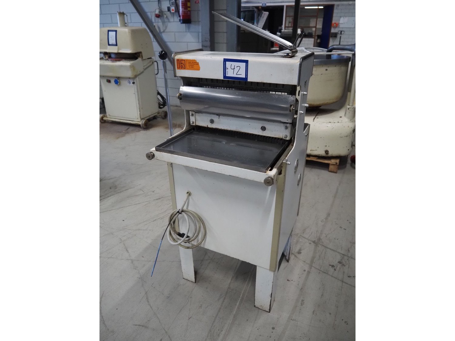 VLB bread slicer, type: VLB 40/125, number: 80167, 110/220 V, 1 Ph, 50 Hz, 30 knives, distance between knives: 12.5 mm, working width: 570 mm x 650 mm x 1300 mm. Kavel locatie: Looyenbeemd 11, 5652 BH Eindhoven, Nederland