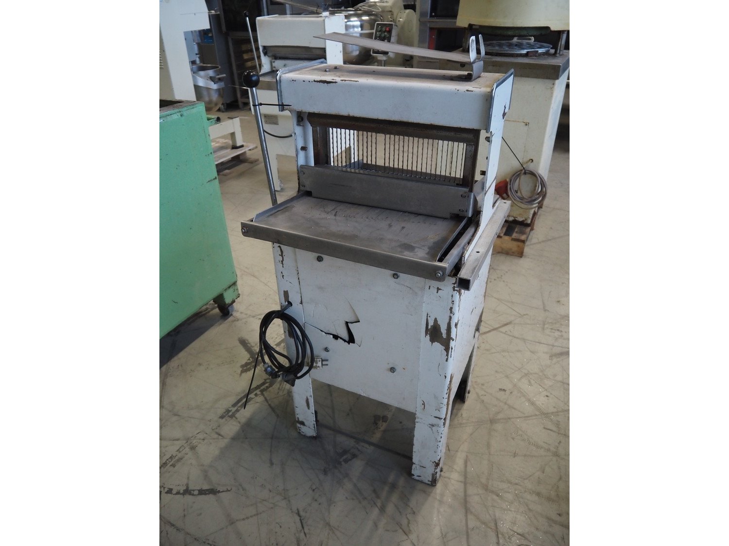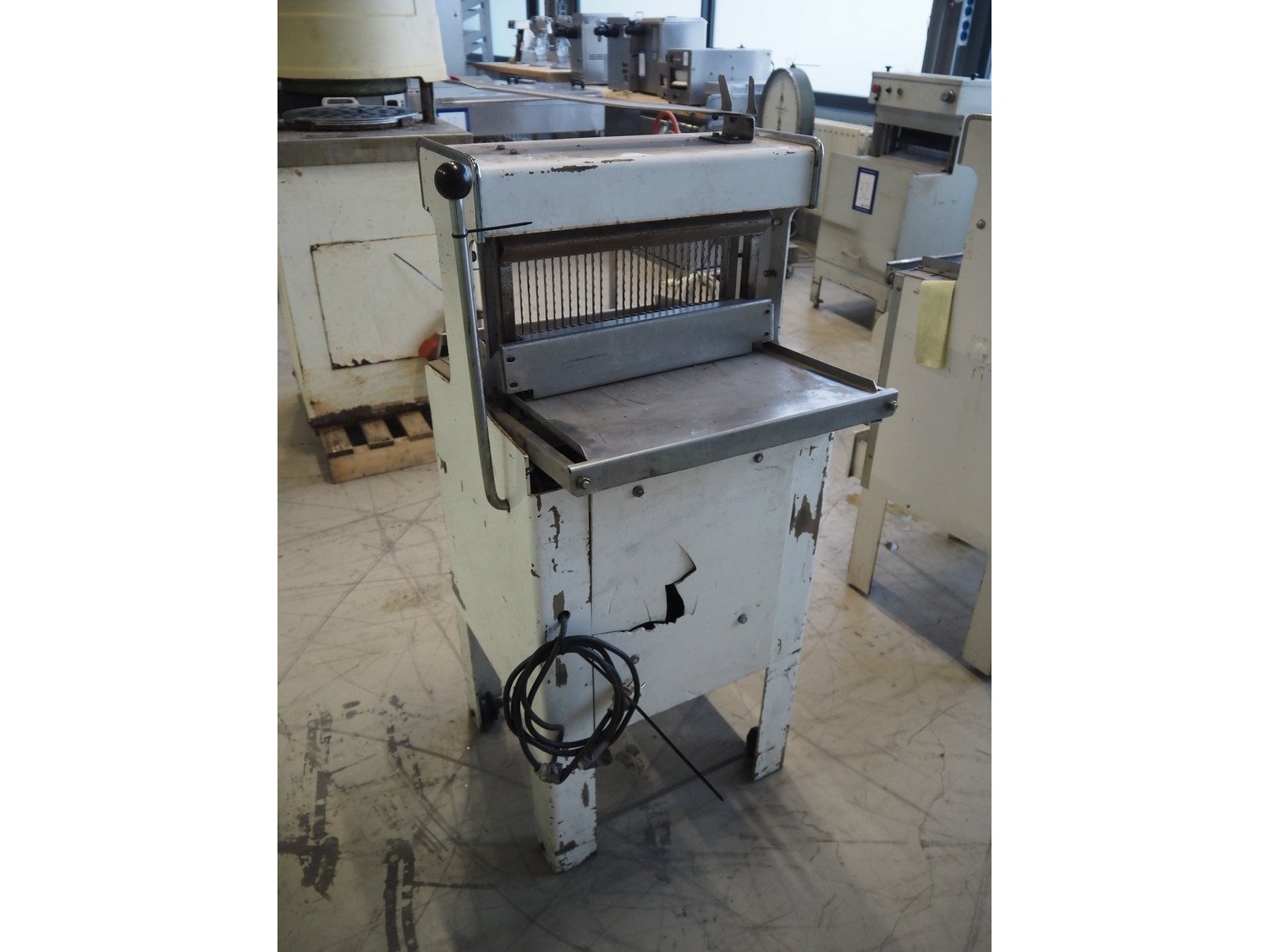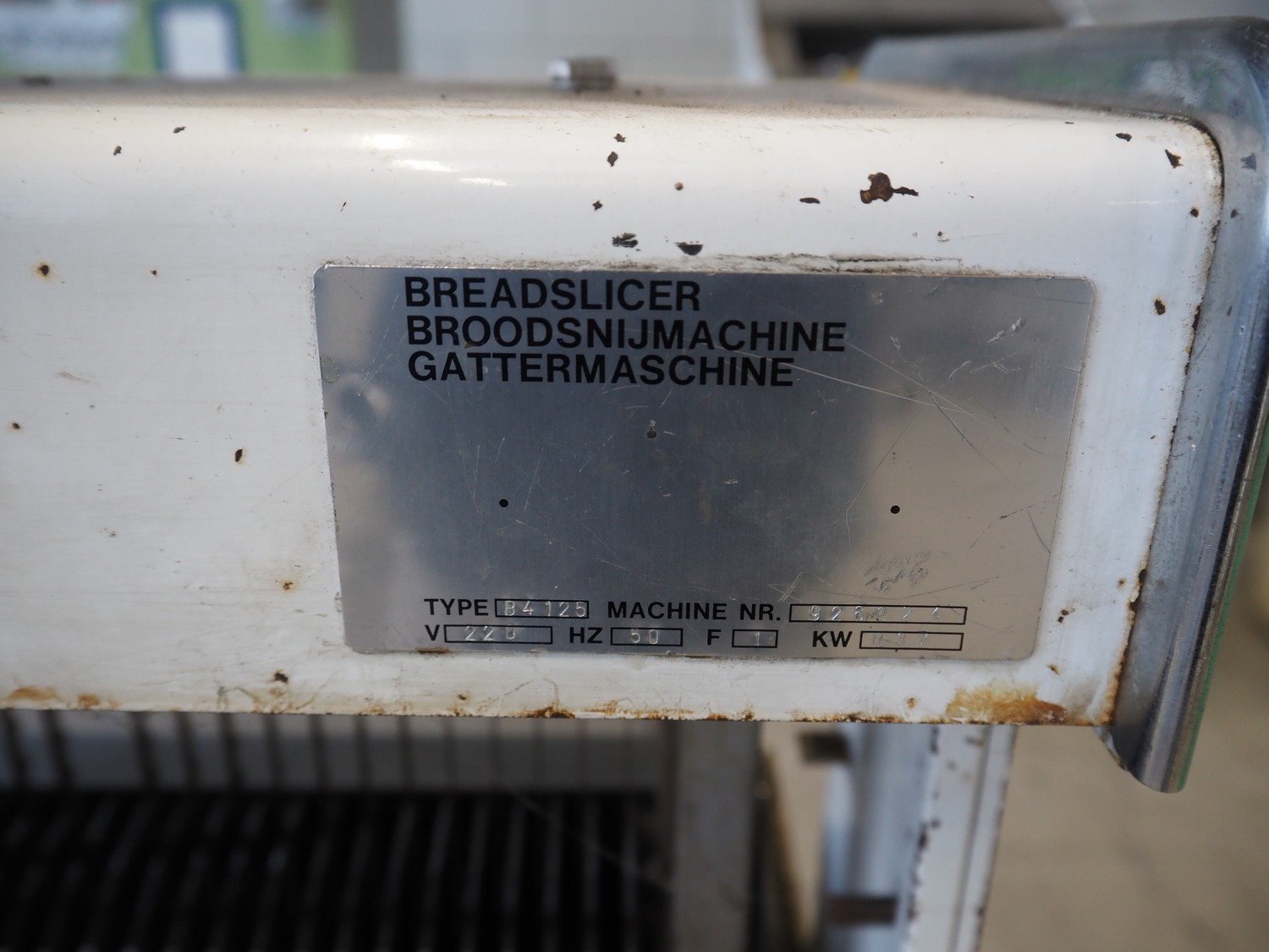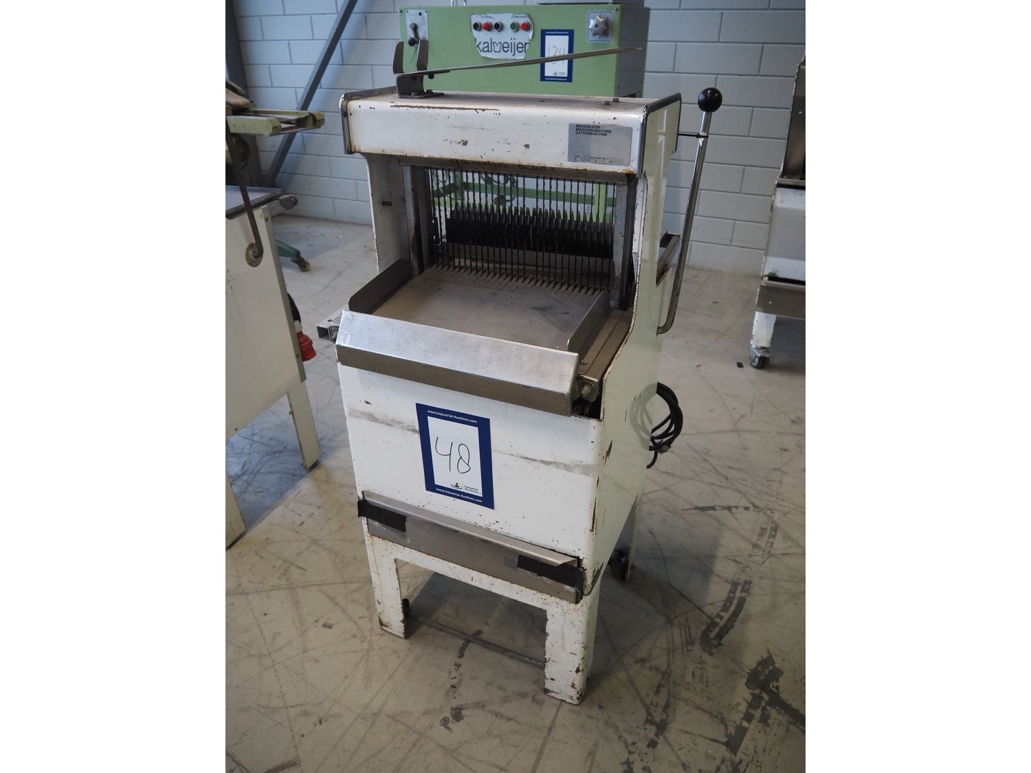 Mobile bread slicer, type: B4125, machine number: 926074, 220 V, 1 Ph, 50 Hz, 0.37 kW, 30 knives, distance between knives: 12.5 mm, working width: 385 mm, total dimensions: 600 mm x 630 mm x 1240 mm. Incomplete. Kavel locatie: Looyenbeemd 11, 5652 BH Eindhoven, Nederland