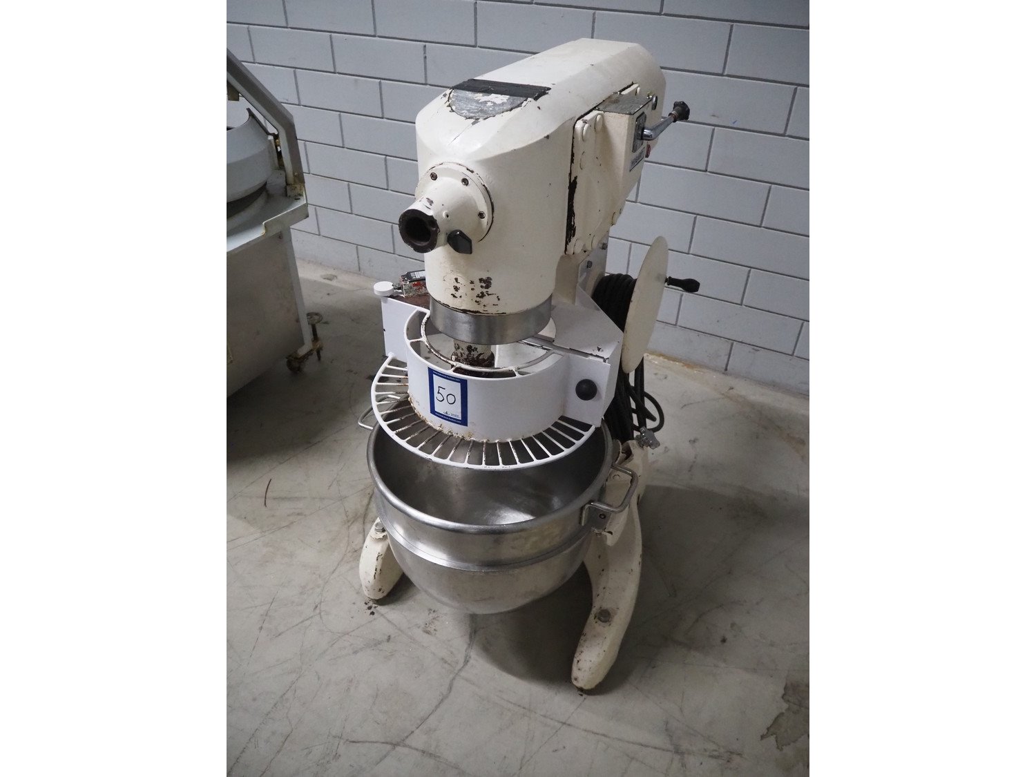 Hobart mixer, model: PF 601, number: 736444, 380 V, 3 Ph, 50 Hz, 3 A, inside dimensions: ø 400 mm x 350 mm, total dimensions: 900 mm x 500 mm x 1270 mm. Including extra whisk. Kavel locatie: Looyenbeemd 11, 5652 BH Eindhoven, Nederland